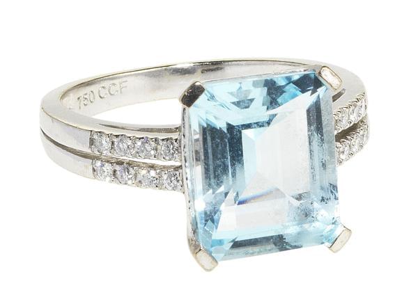 3002. Bague sertie d'une aigue-marine taille rectangle (env. 11 ct)