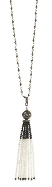 3024. *Sautoir à maille boules facettées retenant un pompon de perles...