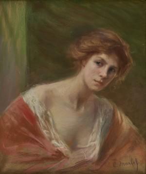 Jeune femme au foulard blanc, pastel sur papier, 34x27 cm
