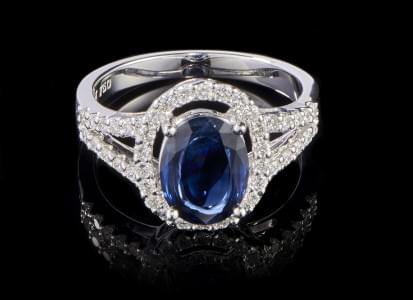 119. Bague sertie d'un saphir taille ovale (env. 1,2 ct) entouré de d...