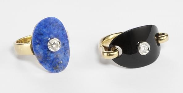 3247. Lot de deux bagues, l'une sertie d'une plaque de lapis-lazuli ce...