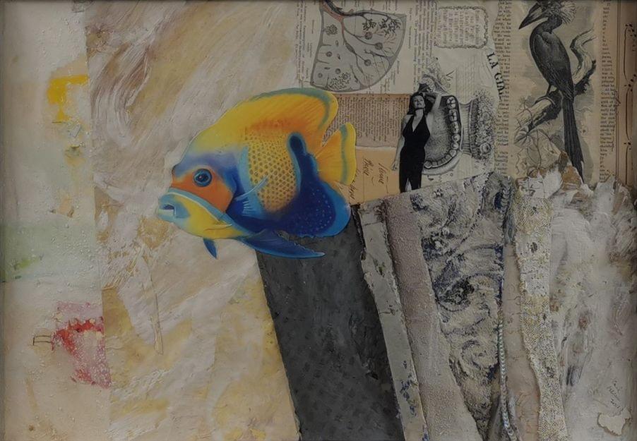Paysage de pêcheurs sur l'étang, huile sur panneau, signée, 18x4...
