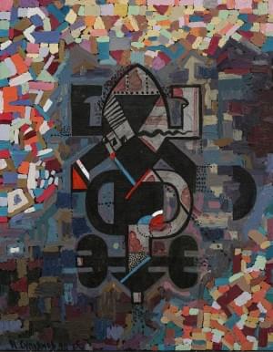 Composition moderniste, huile sur toile, signée et datée 90, 70x...