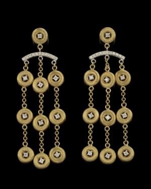 732. Boucles d'oreilles longues serties de diamants et retenant trois...