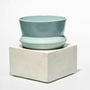 Grand Vase Podium, céramique émaillée bleu et blanc, 30x25x25 cm