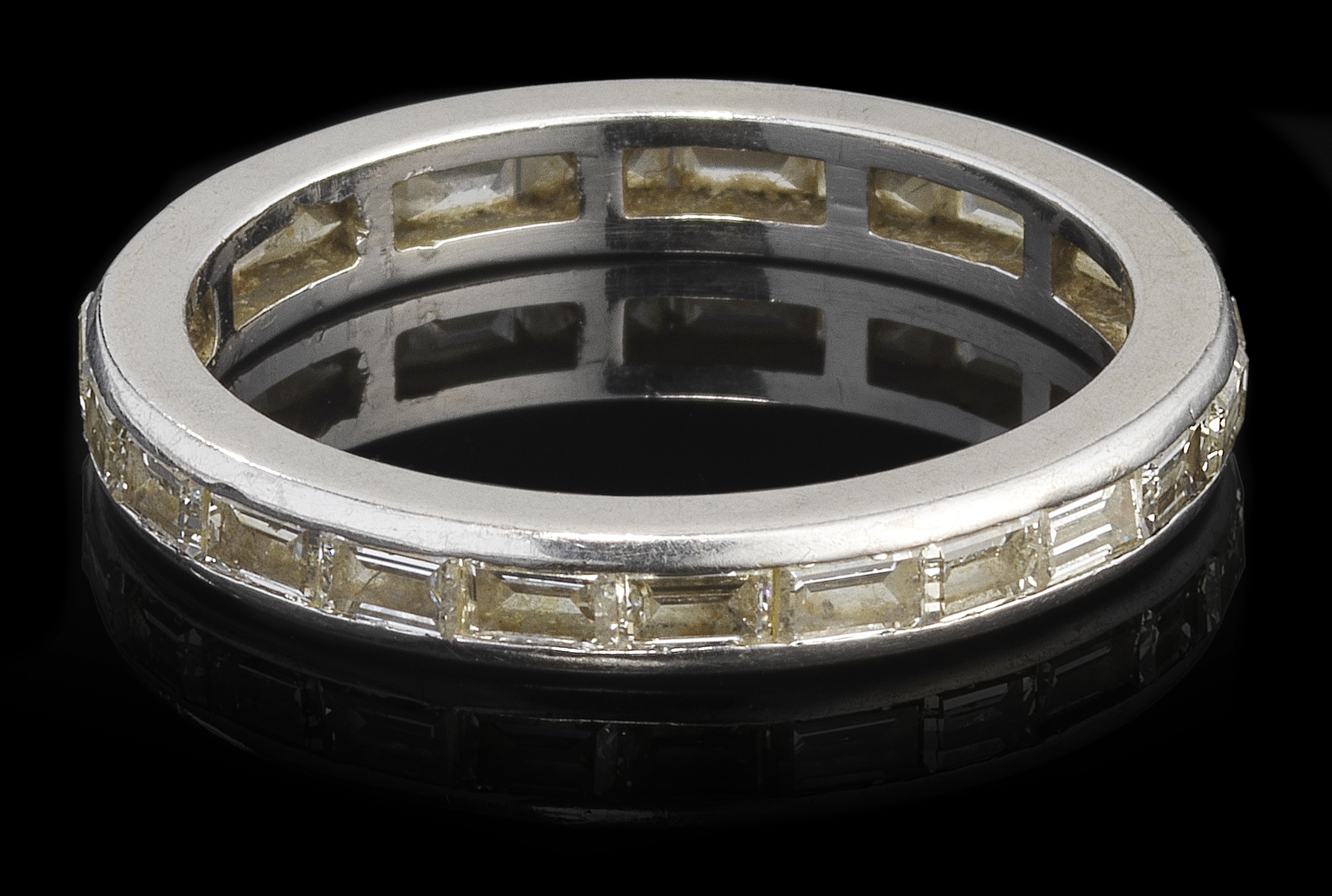 Epaulée de diamants taille baguette, or et or gris 750, doigt 54...