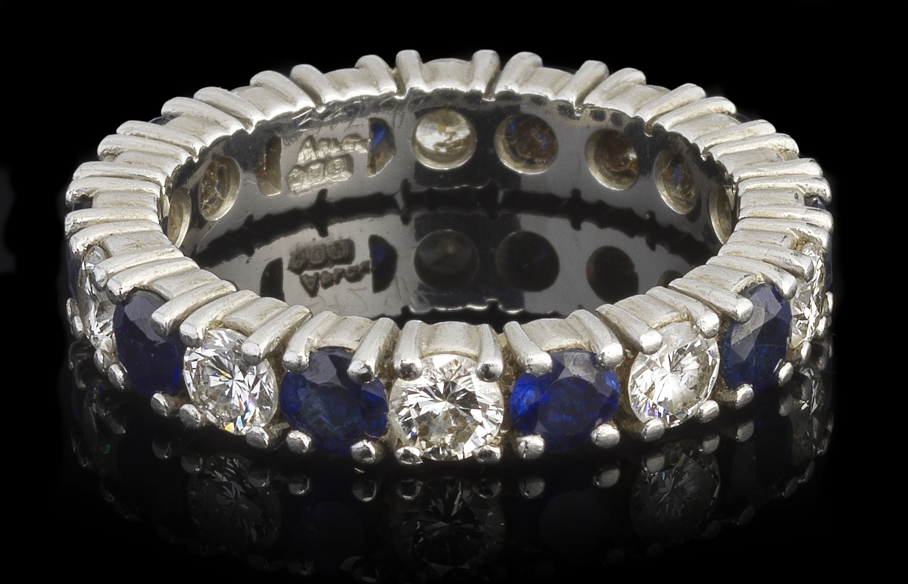 4447. Anneau tour-complet serti de saphirs et de diamants en alternanc...