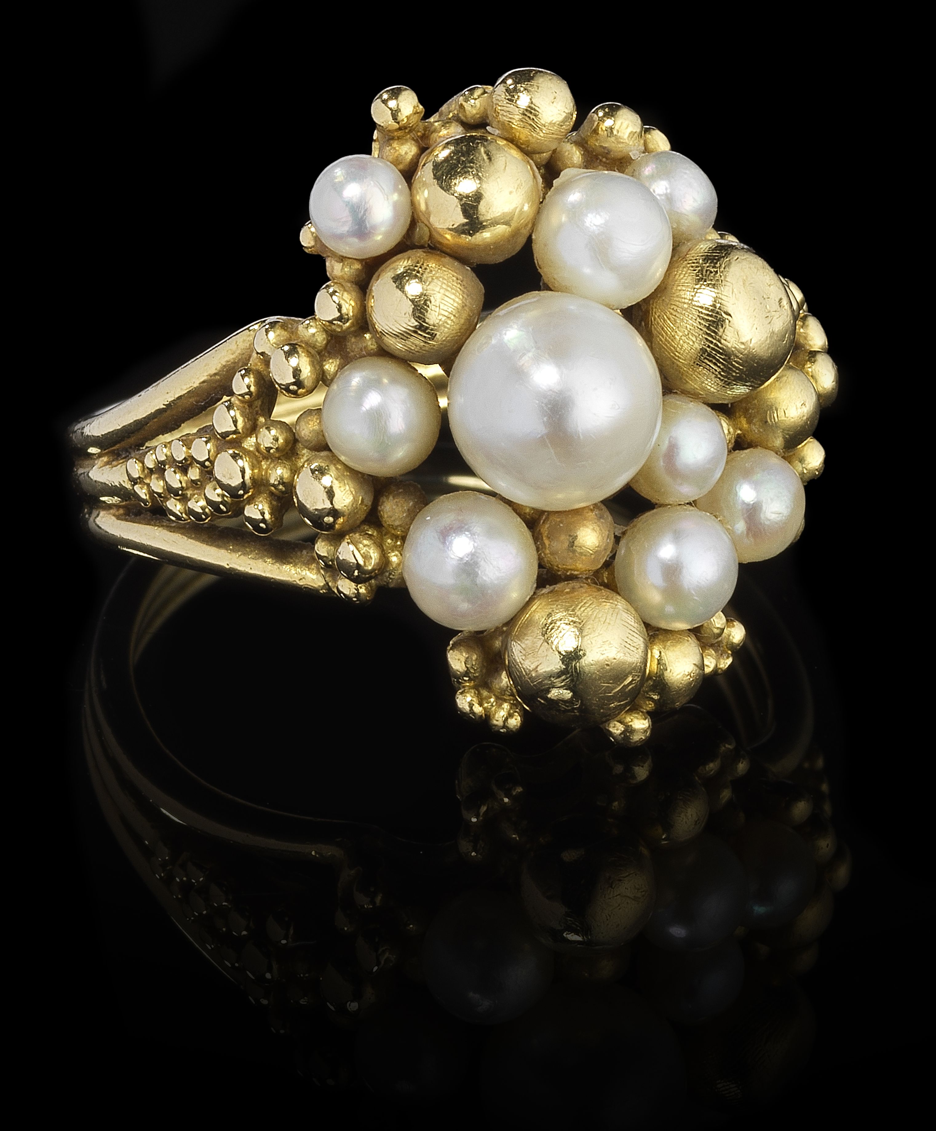 Entouré de demi-perles, or 750, D 2,5 cm, 7 g