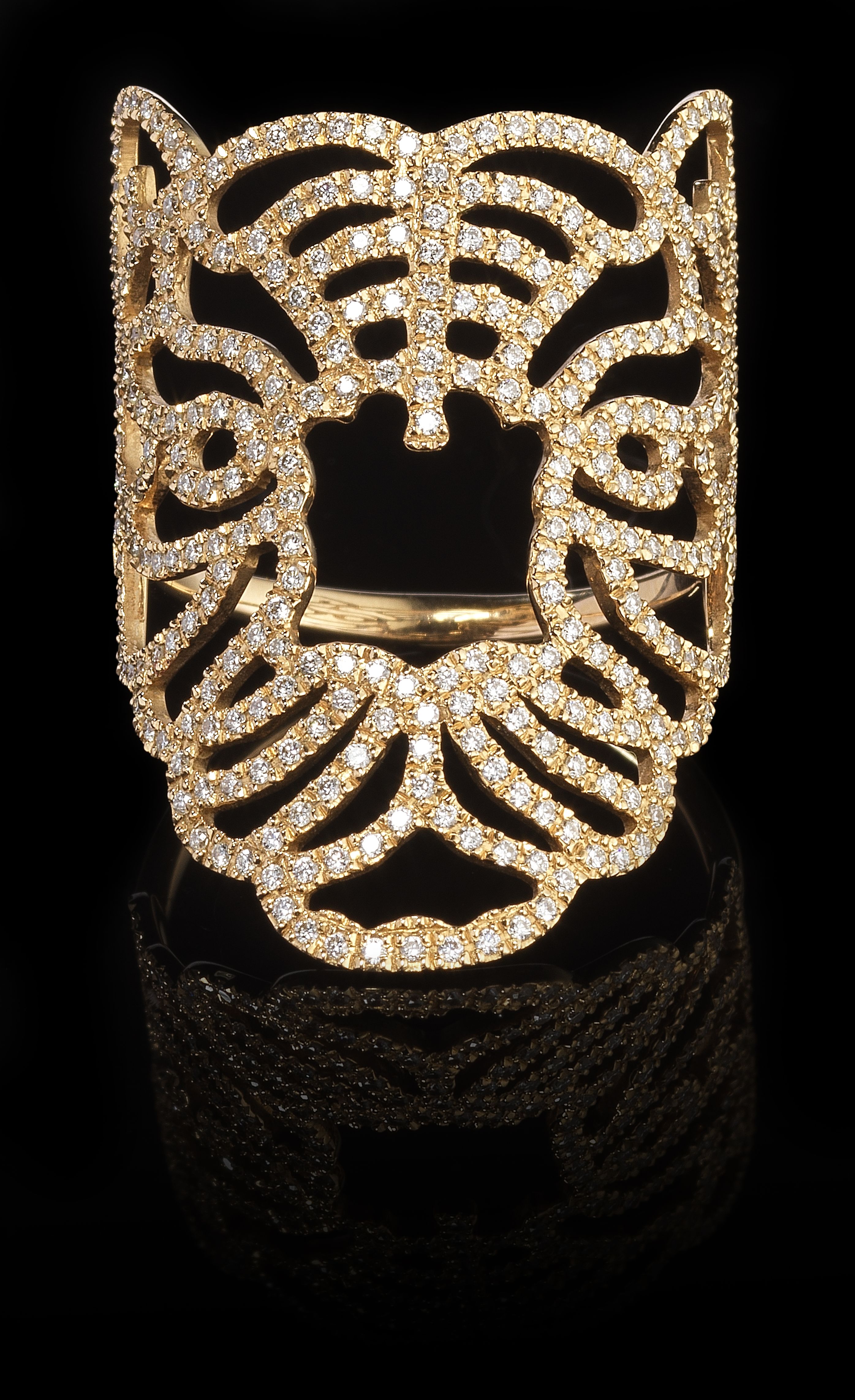 4415. Bague à motif de tête de tigre ajourée et pavée de diamants
