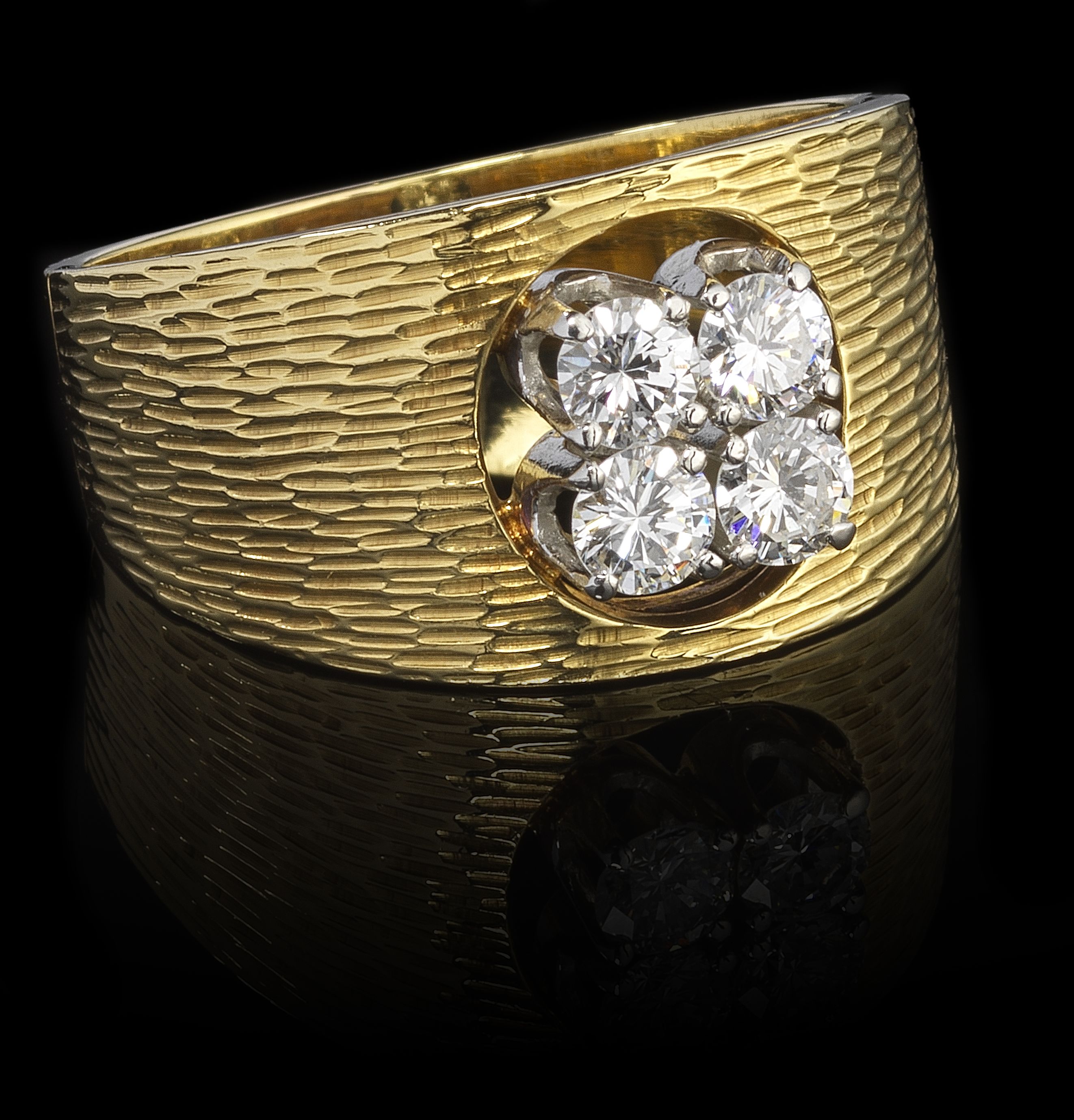 4456. Bague bandeau centrée d'un motif ajouré serti de quatre diamants