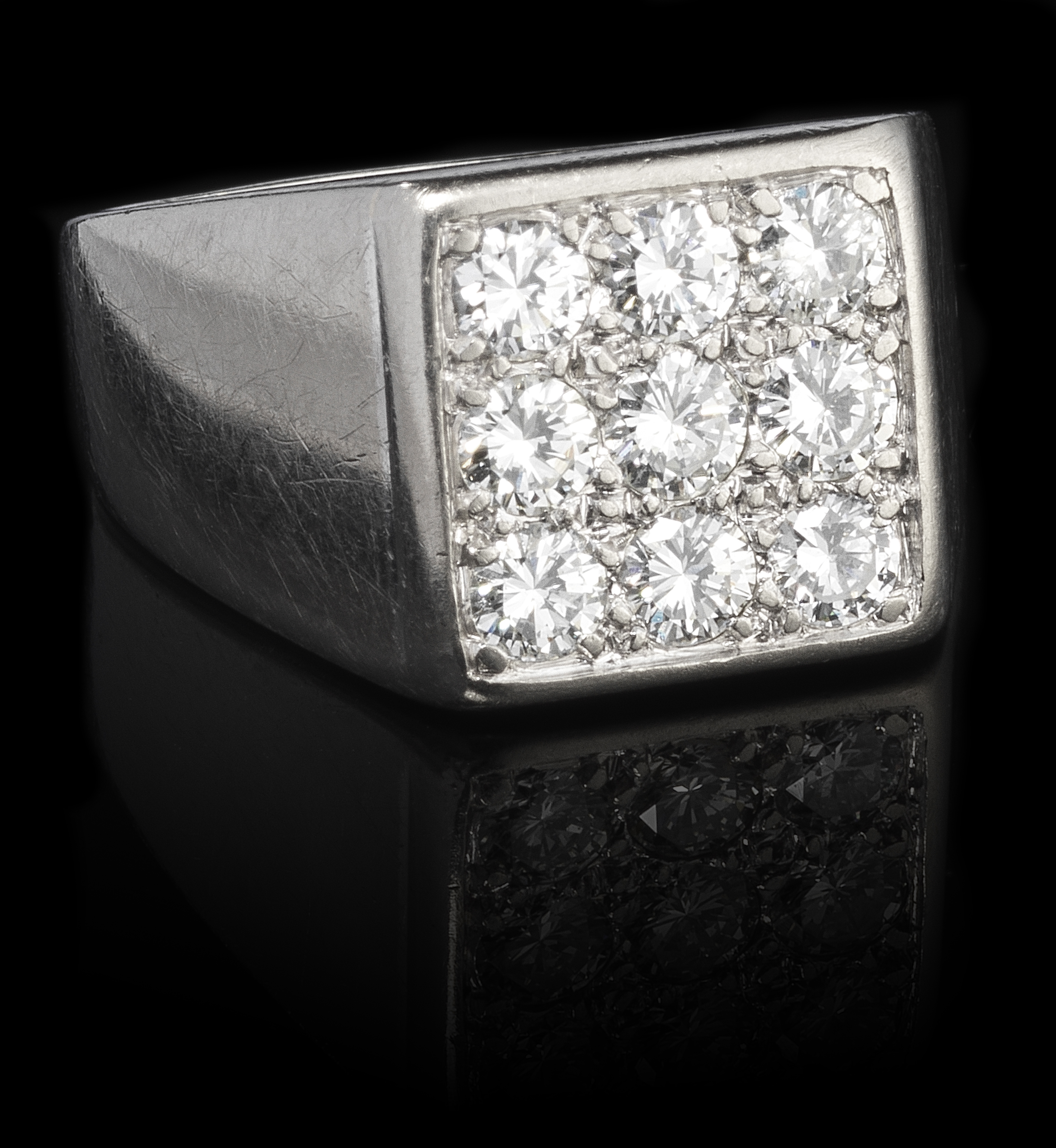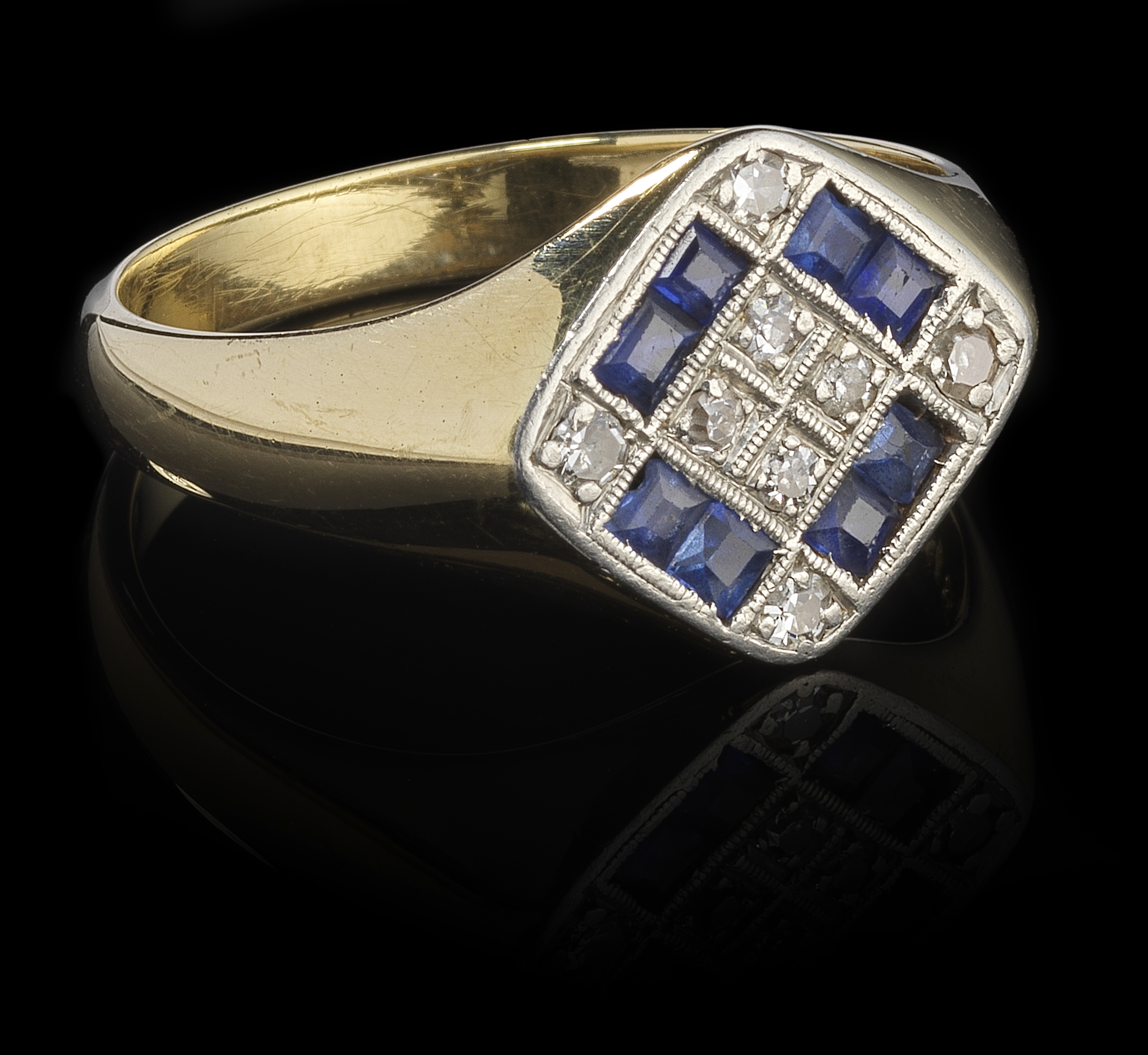 4439. Bague chevalière de style Art déco à motif de losange pavé de sa...
