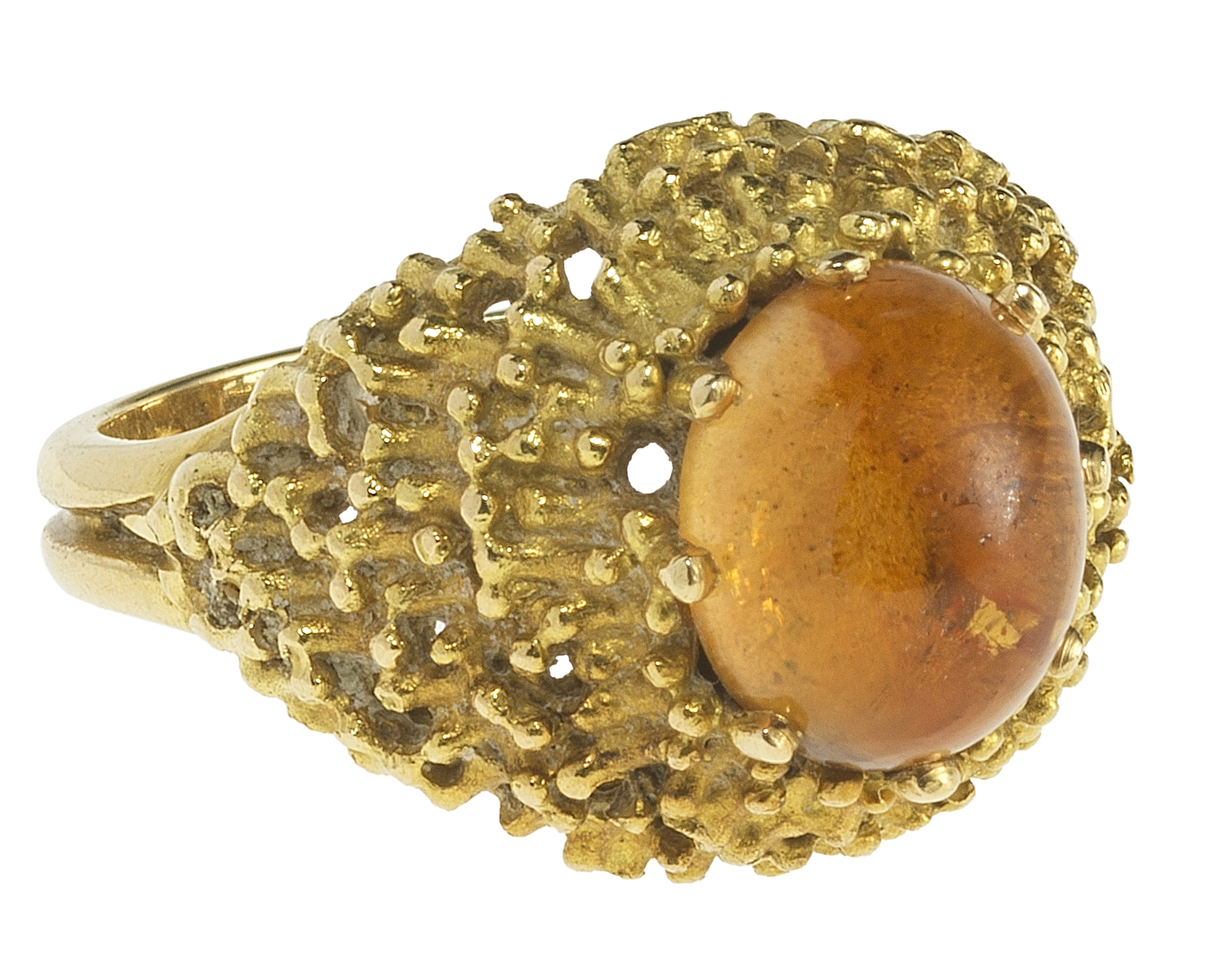 4425. Bague sertie d'un ambre taille cabochon ovale
