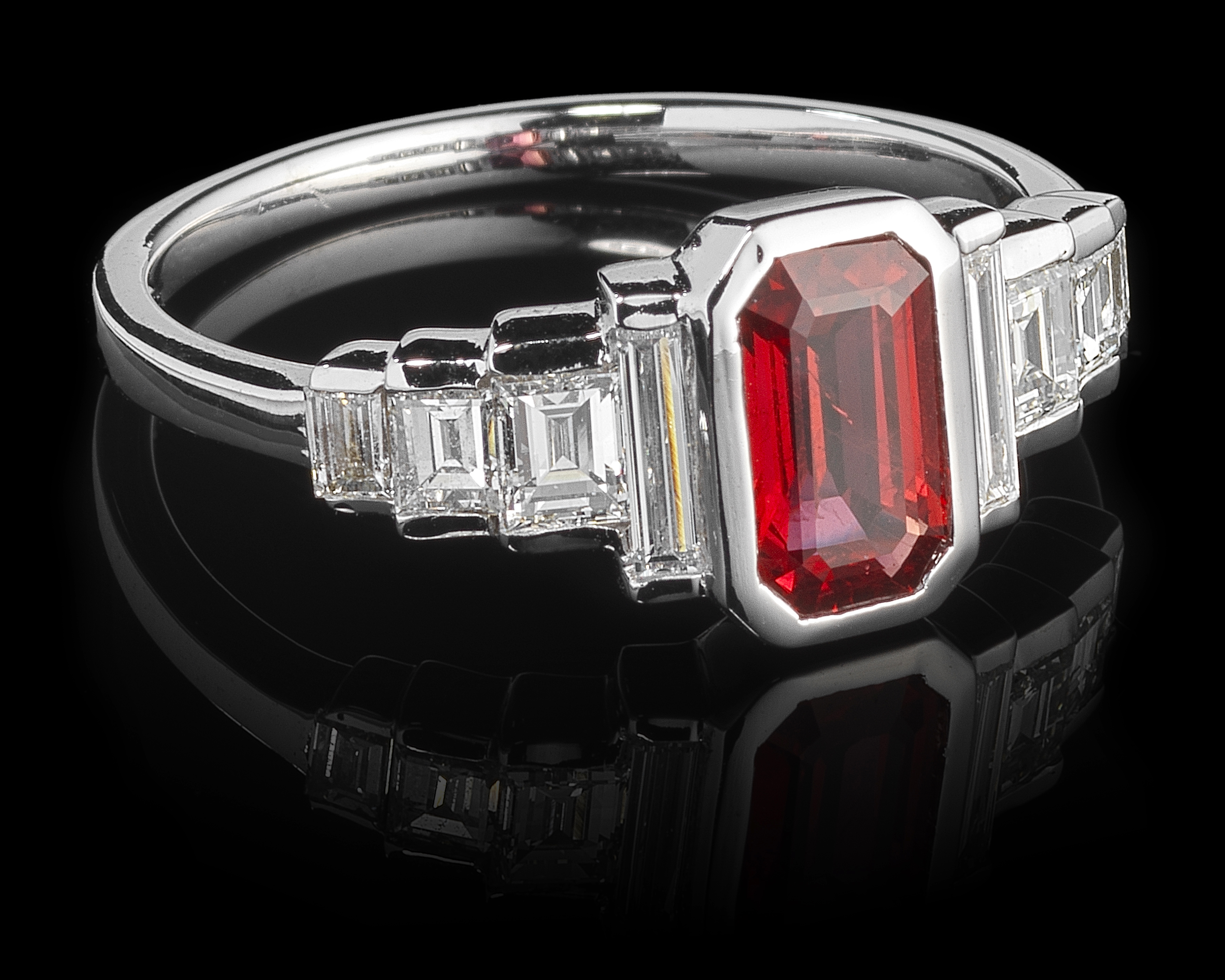 4464. *Bague sertie d'un rubis octogonal (env. 0,8 ct)