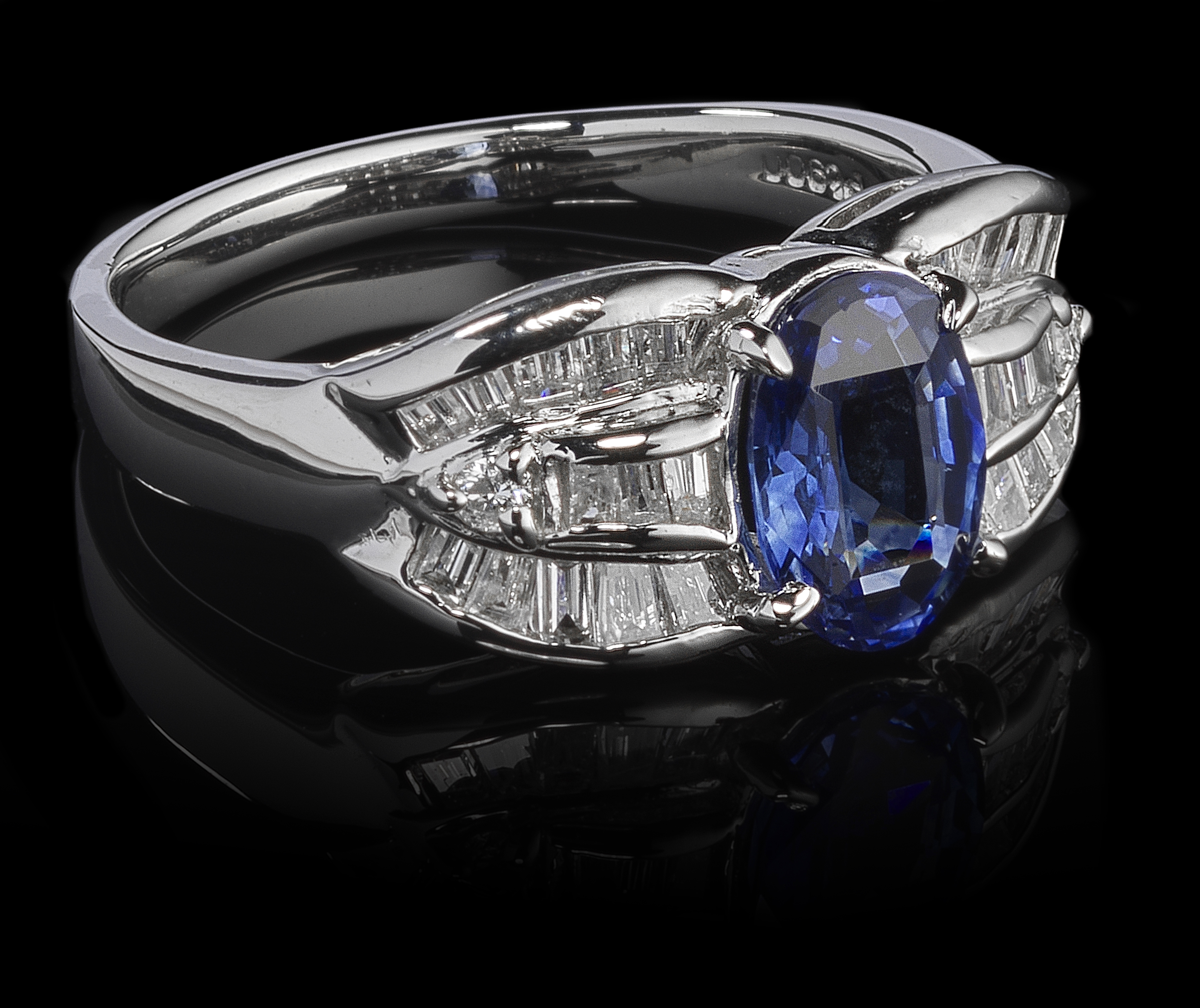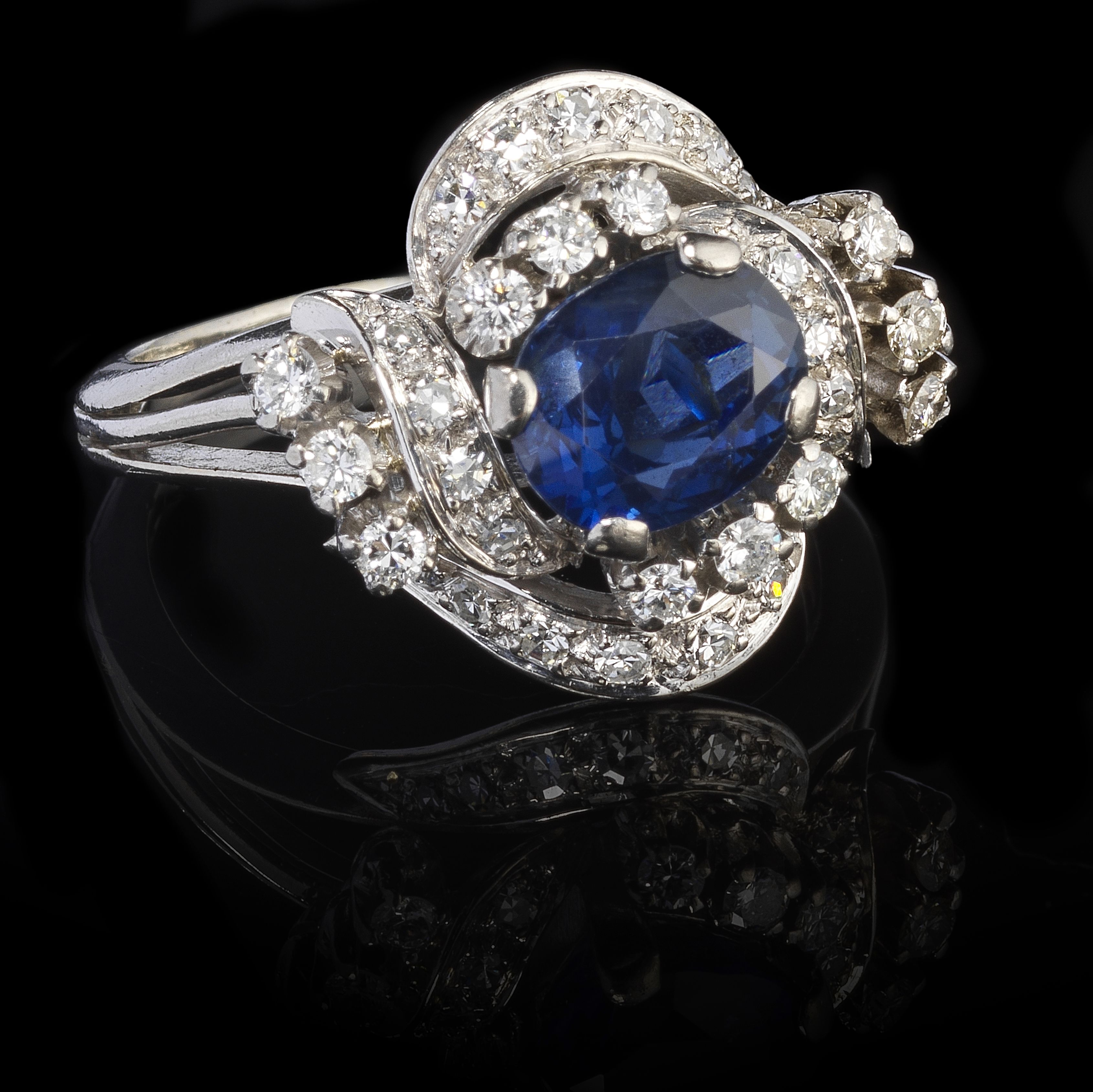 4458. *Bague sertie d'un saphir de Ceylan, non chauffé, taille ovale (...