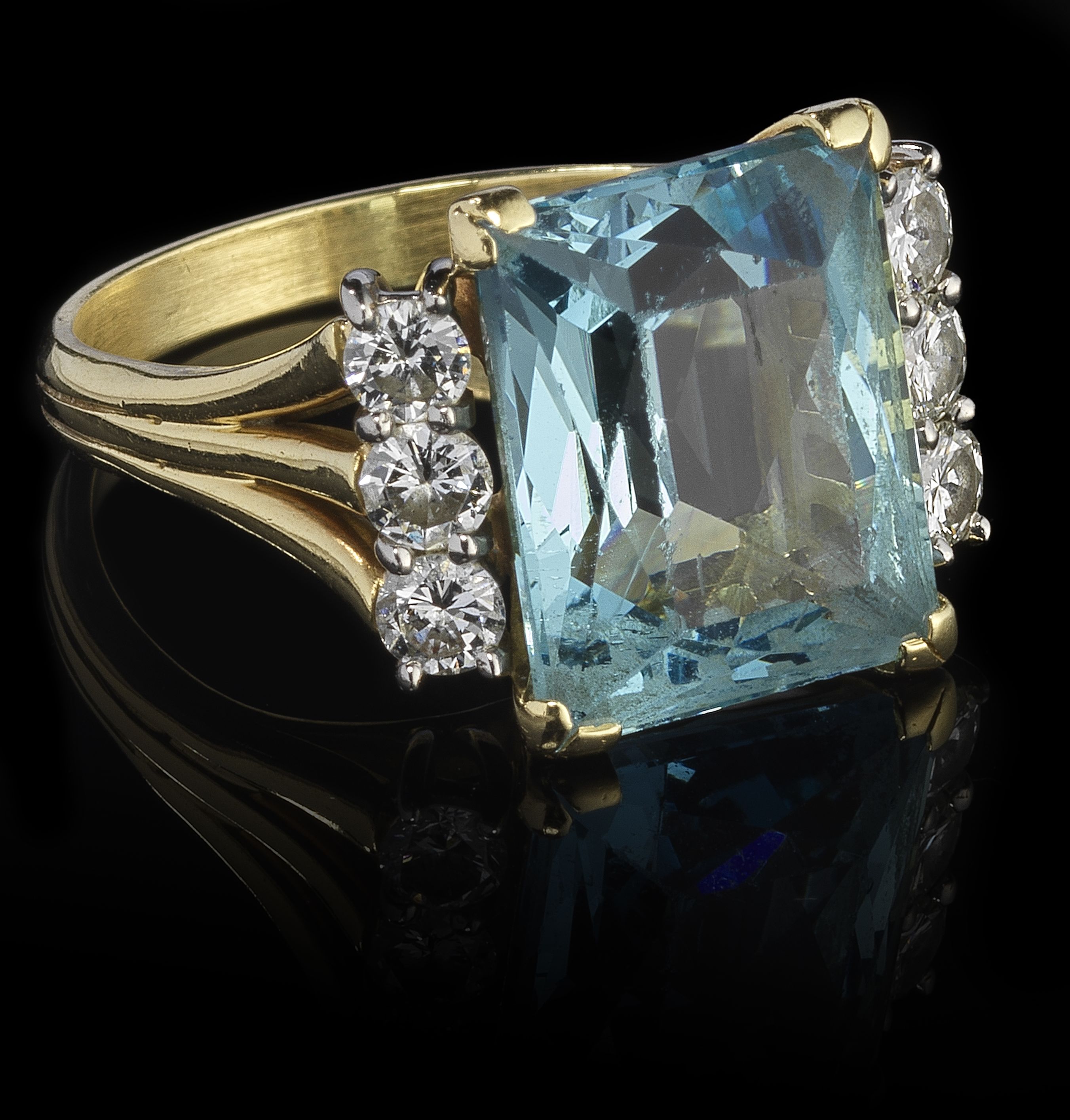 4472. Bague sertie d'une aigue-marine octogonale (env. 10 ct)