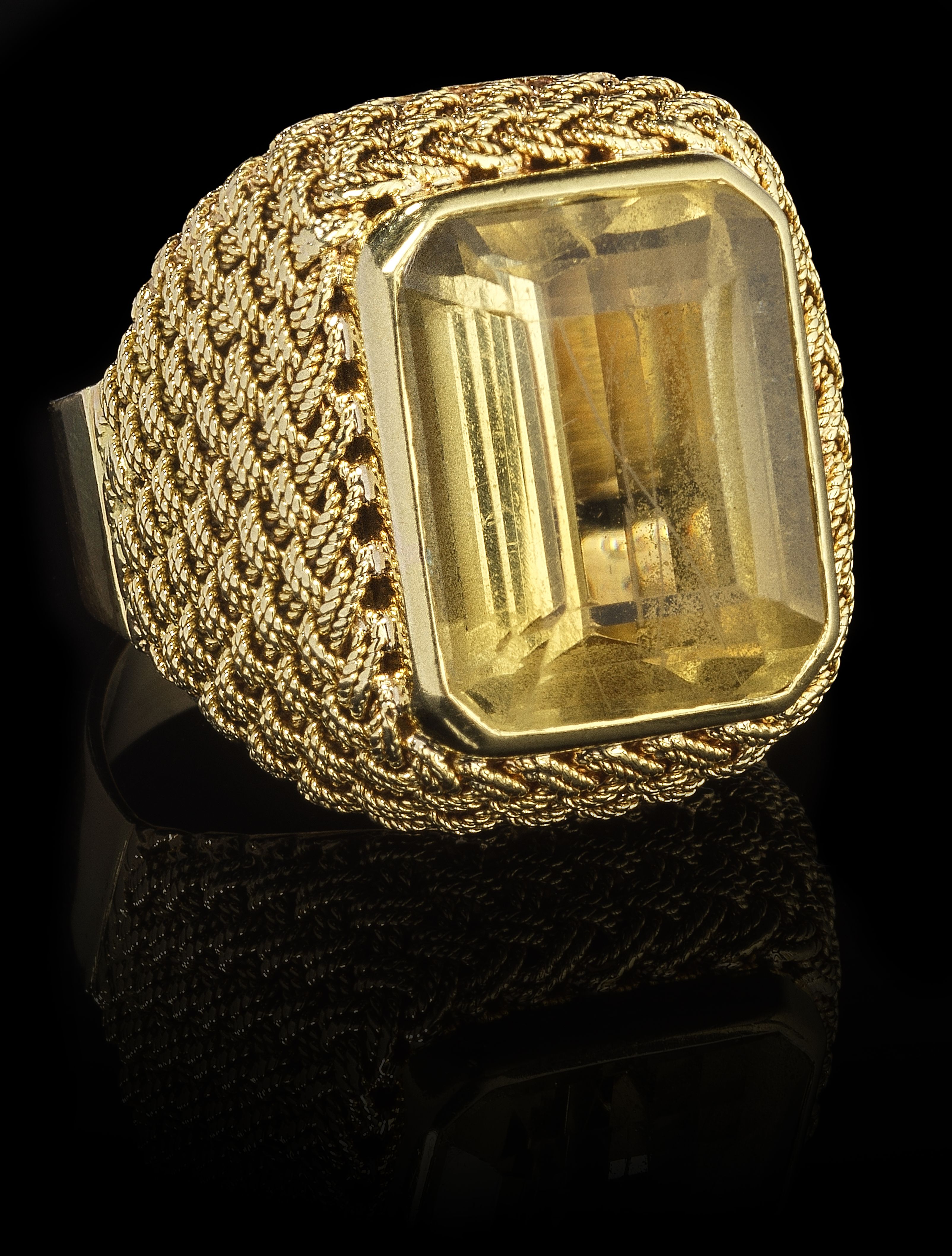 4423. Bague sertie d'une citrine taille rectangle (env. 10 ct)