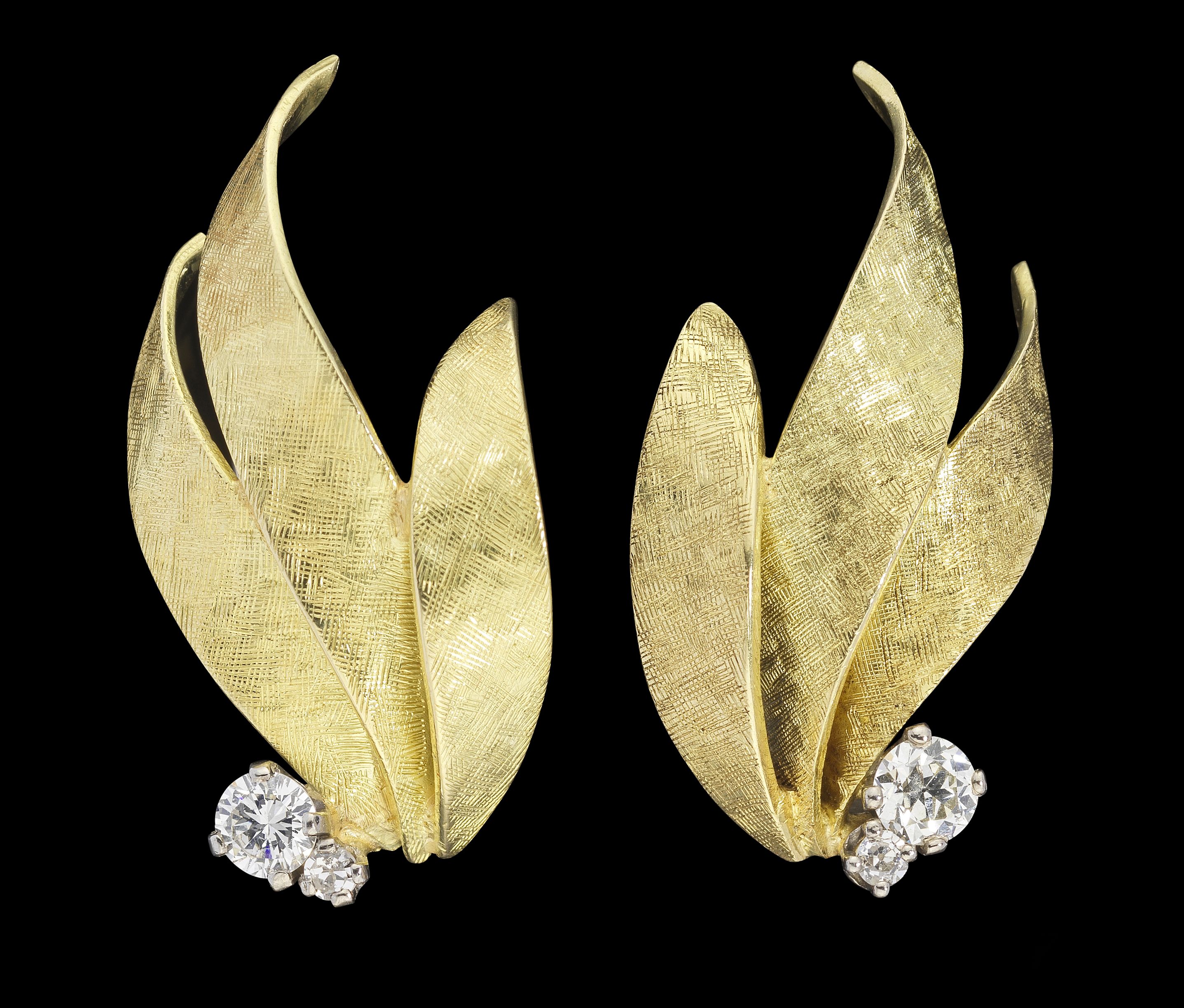 4461. Boucles d'oreilles à motif feuillagé stylisé serti de diamants