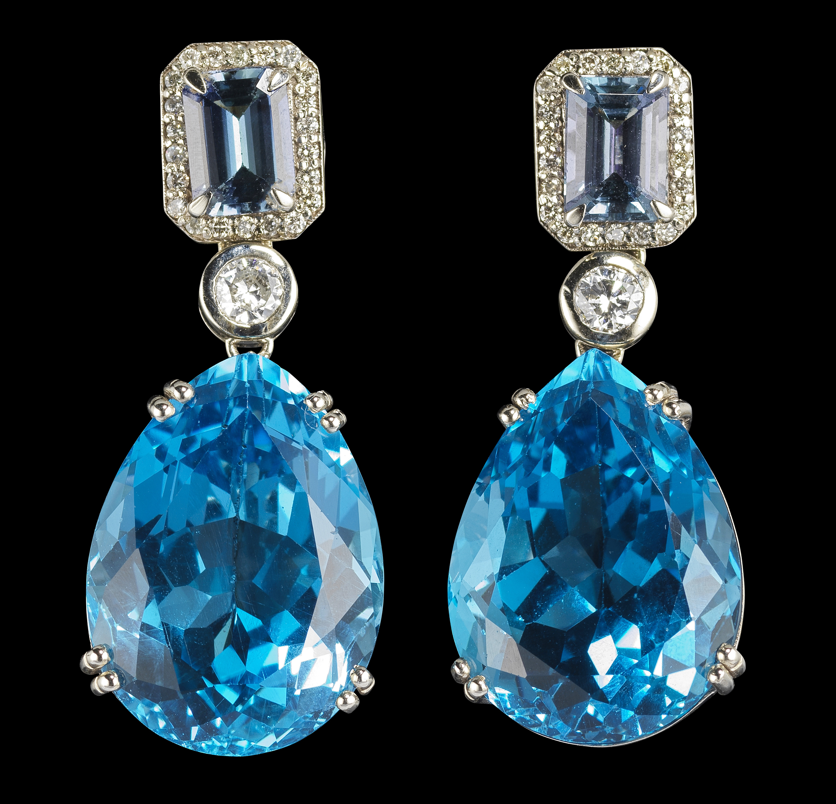 4459. *Boucles d'oreilles serties chacune d'une topaze bleue taille po...