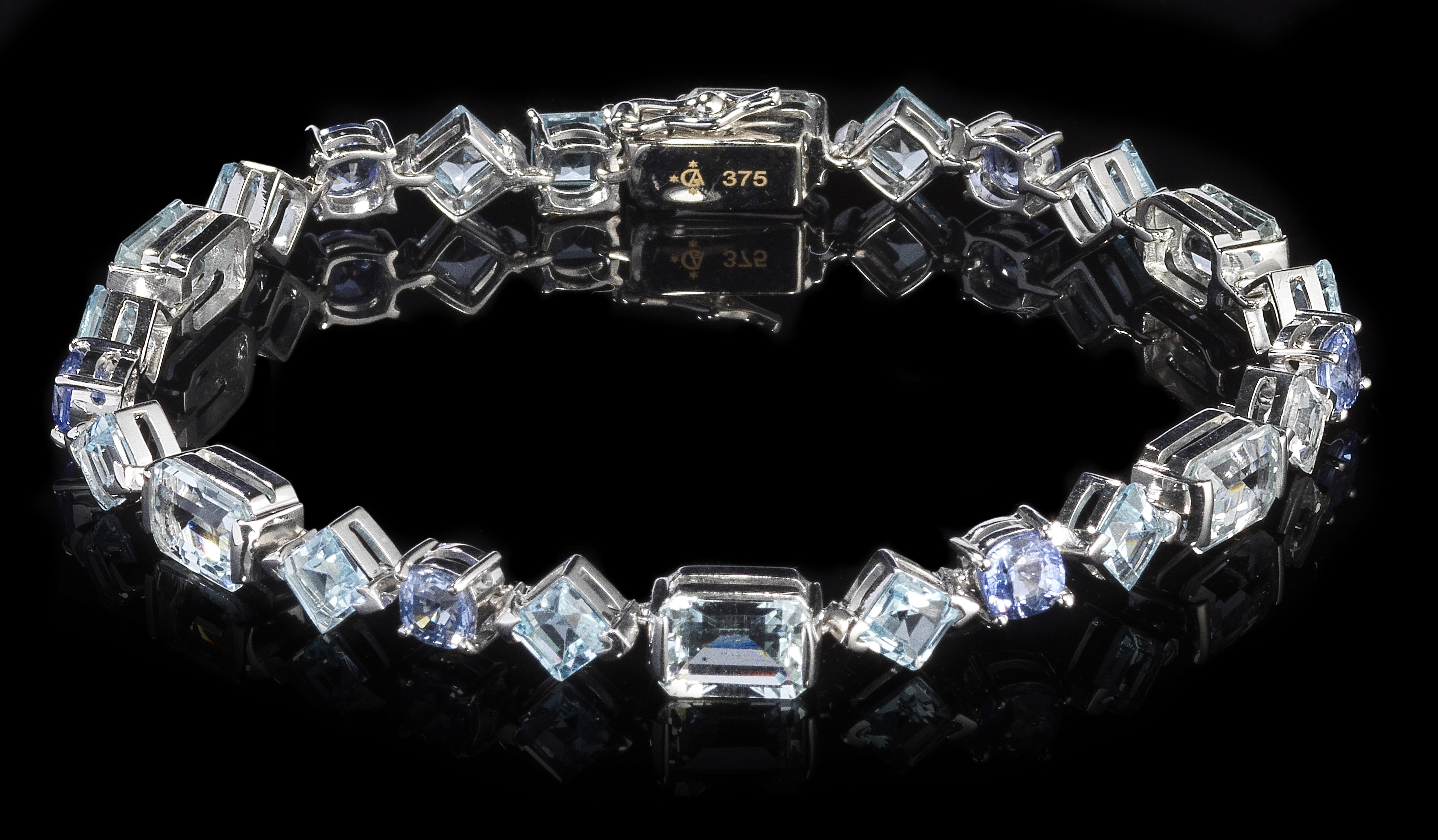 4431. *Bracelet serti d'une ligne d'aigues-marines, de topazes bleues...