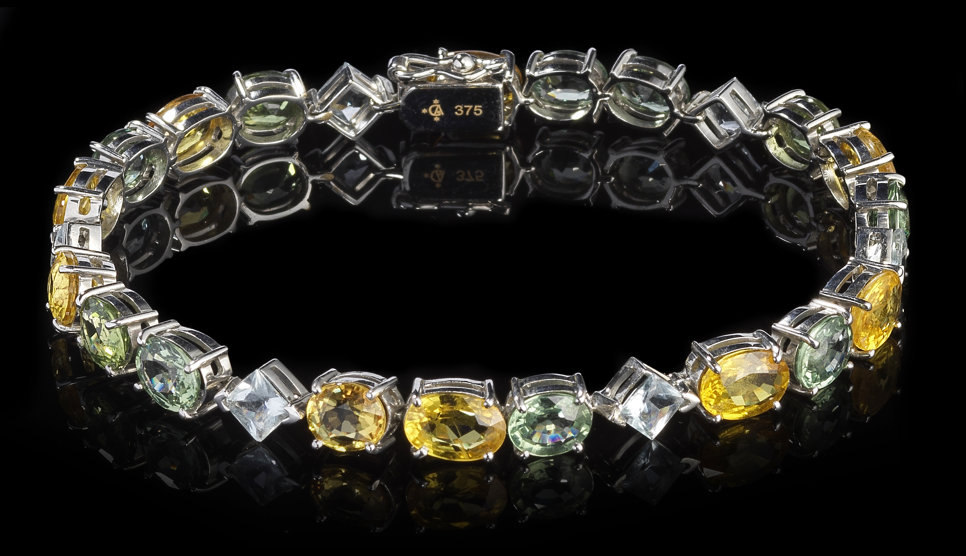 4460. *Bracelet serti d'une ligne de saphirs de couleur taille ovale e...
