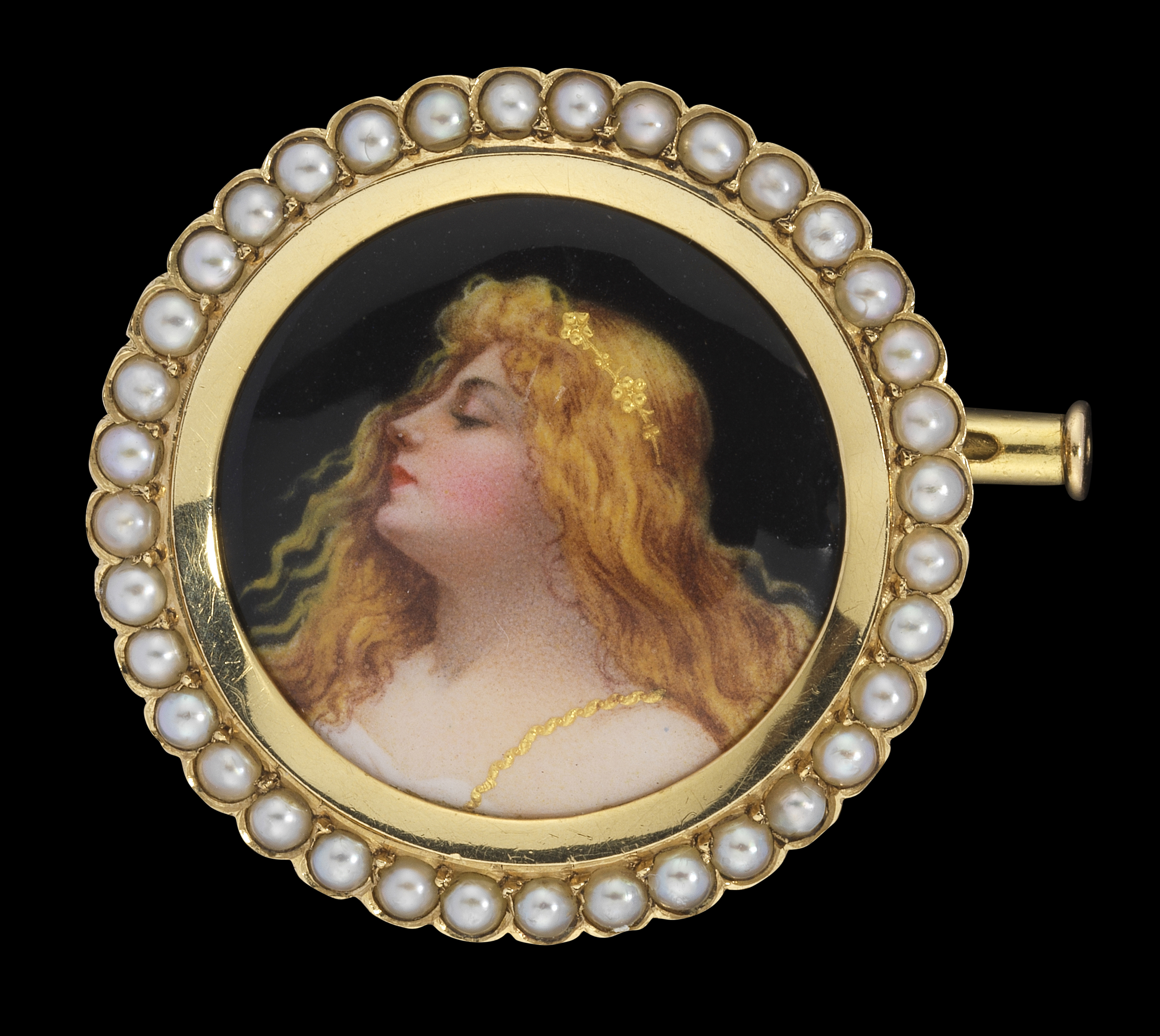 4411. Broche circulaire ornée d'un portrait de jeune femme peint
