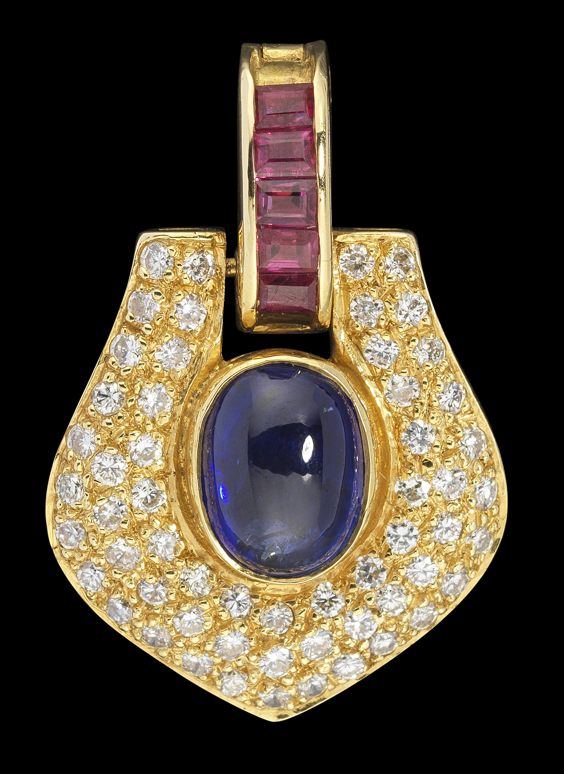 4451. Carl Bücherer, pendentif serti d'un saphir taille cabochon dans...