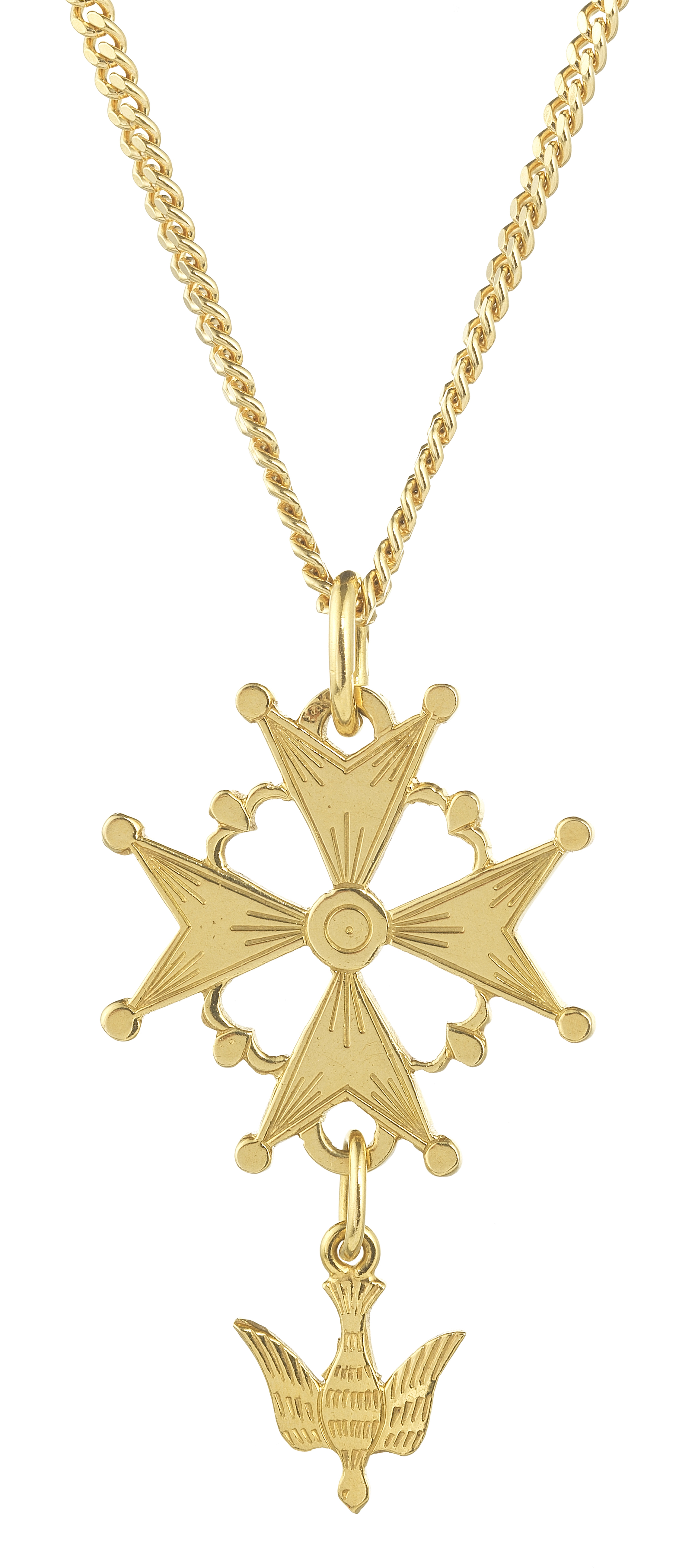 4470. Chaîne à maille gourmette retenant une croix huguenote en penden...