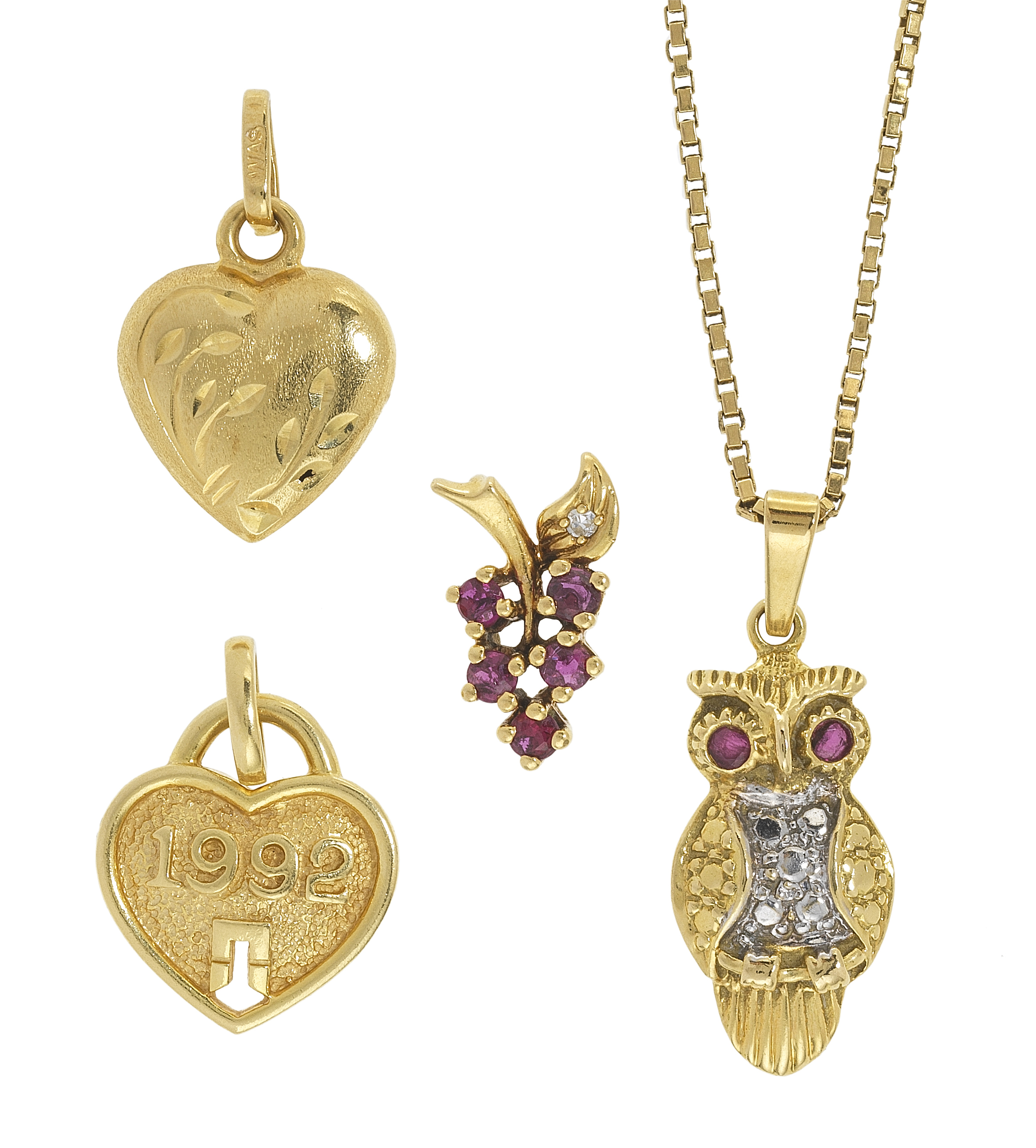 4446. Suite de trois pièces montées en pendentif ou porte-clés