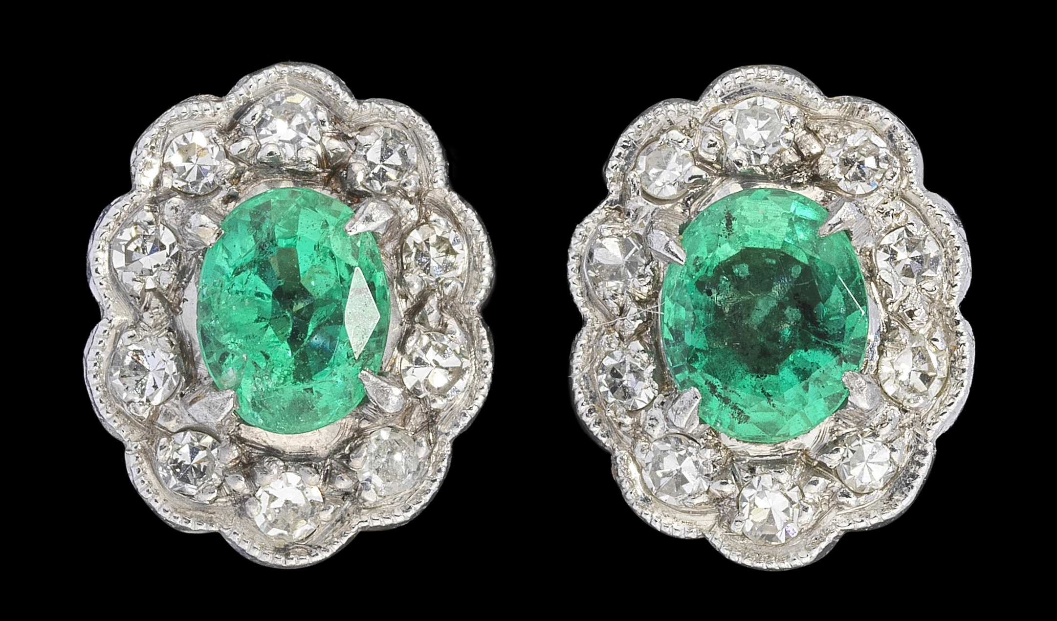 4421. *Clips d'oreilles sertis chacun d'une émeraude de Colombie, mino...