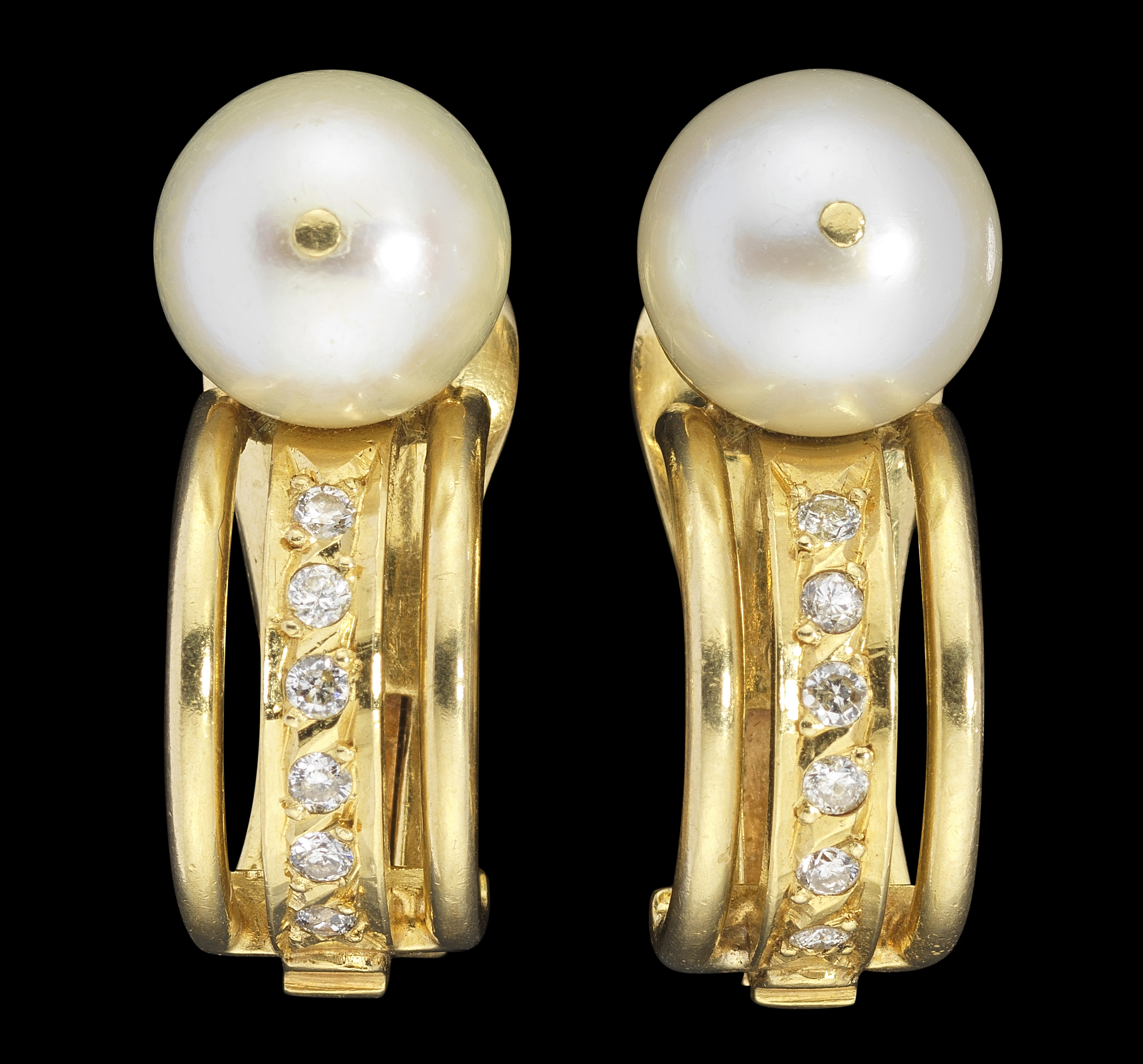 4433. Clips d'oreilles sertis chacun d'une perle (D 8 mm)