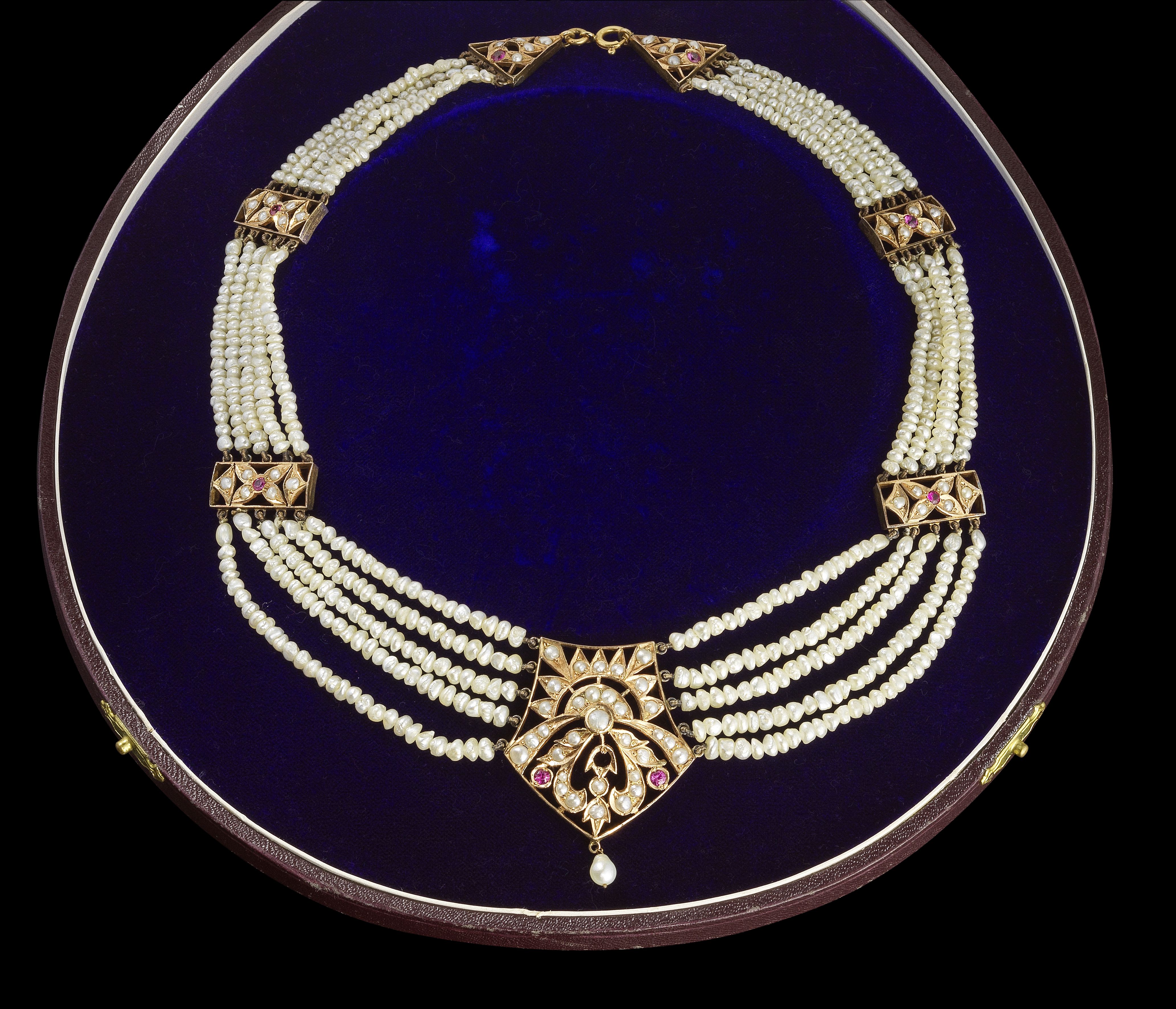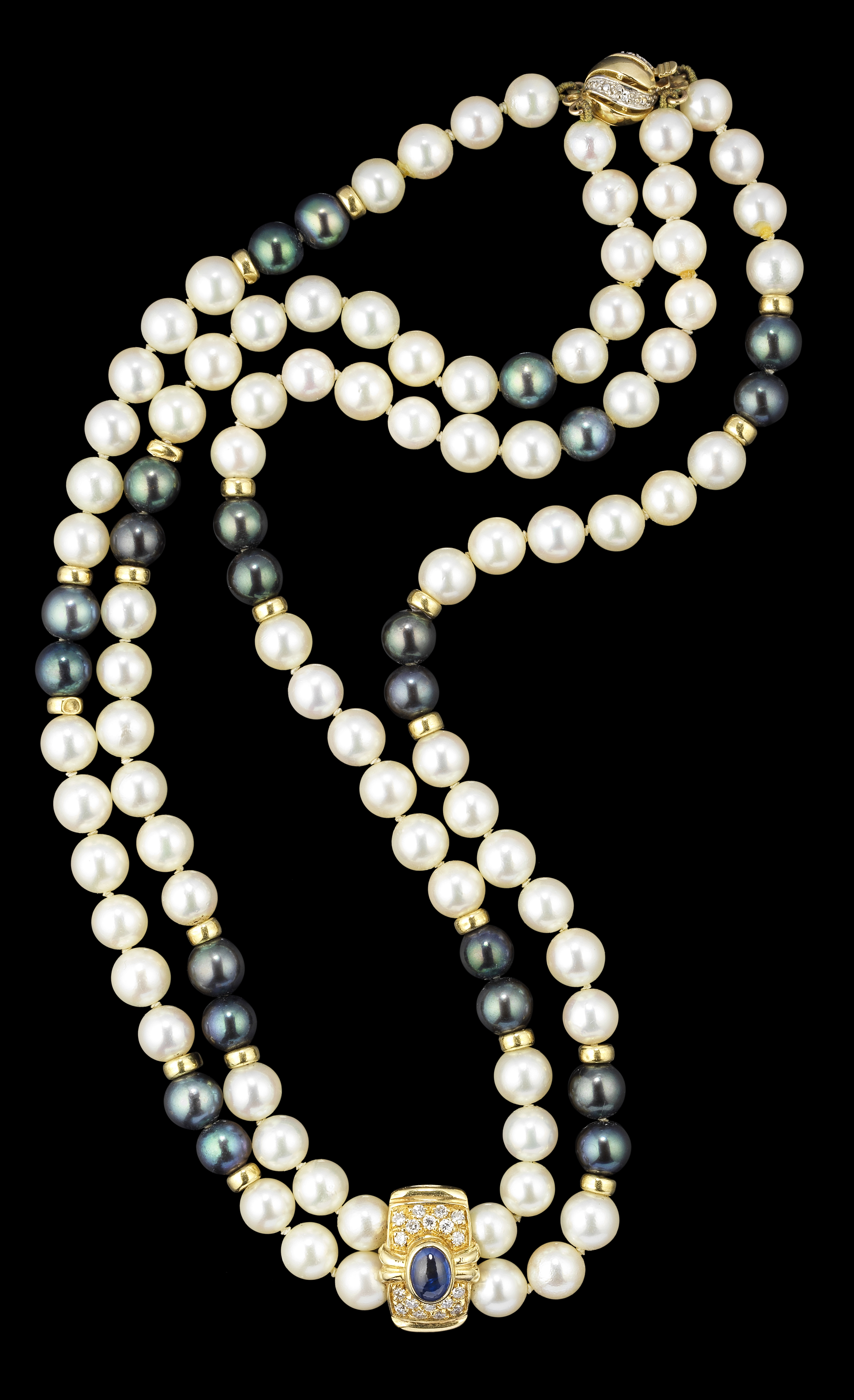 4450. Collier tour de cou composé de deux rangs de perles et perles de...