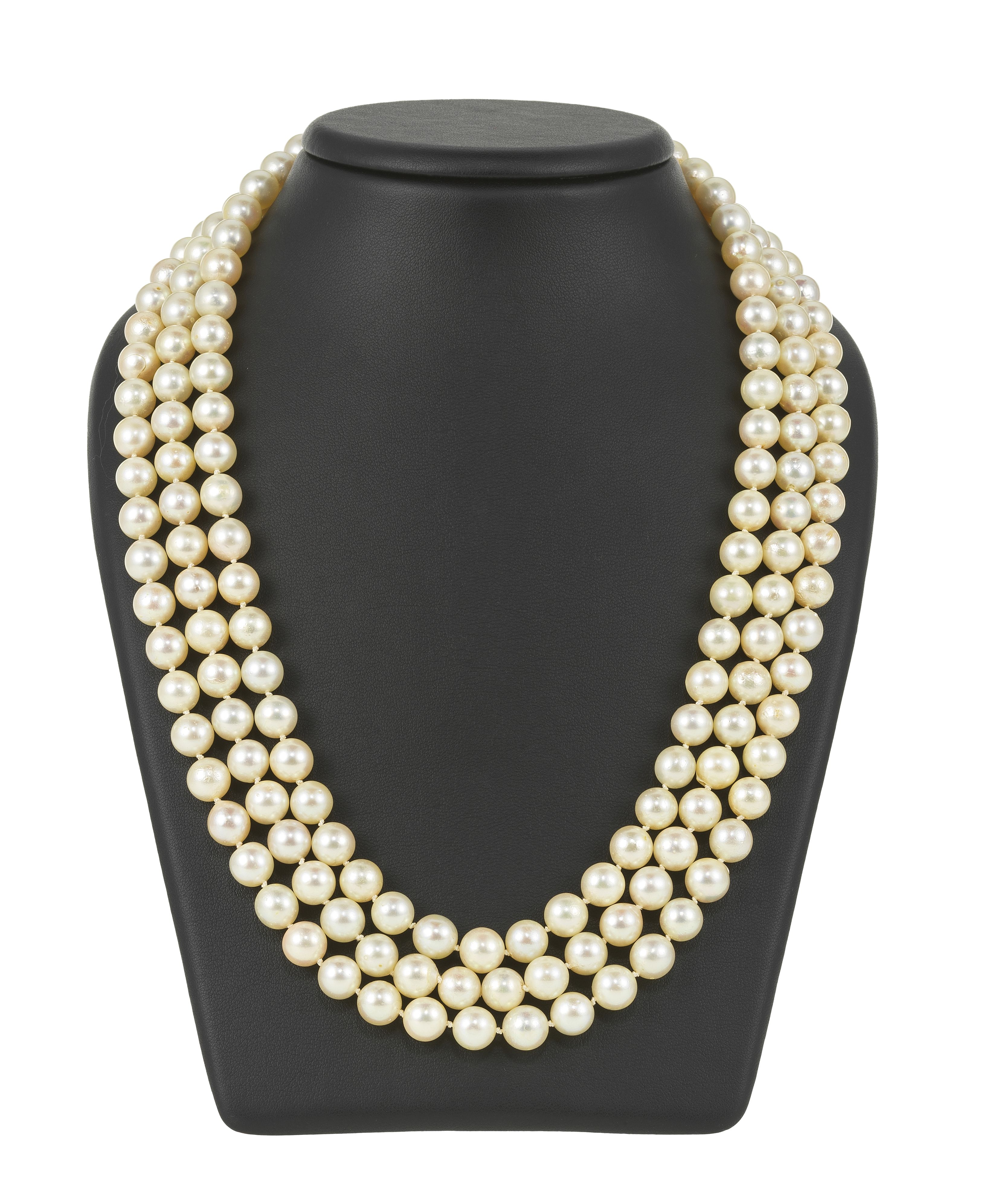 4419. Collier composé de trois rangs de perles (D env. 8,5 mm)