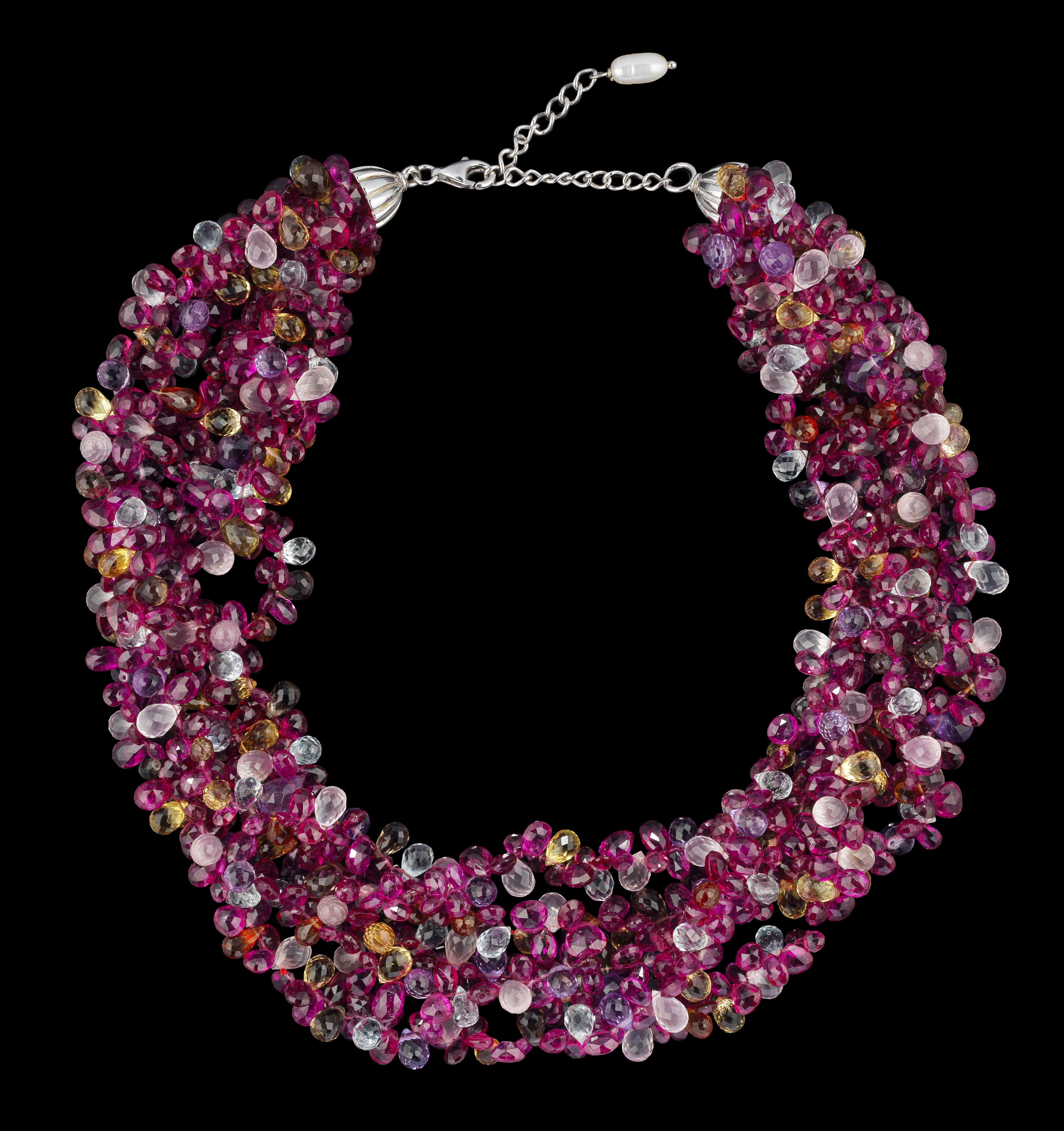 4467. Collier multi-rangs de briolettes de tourmalines roses