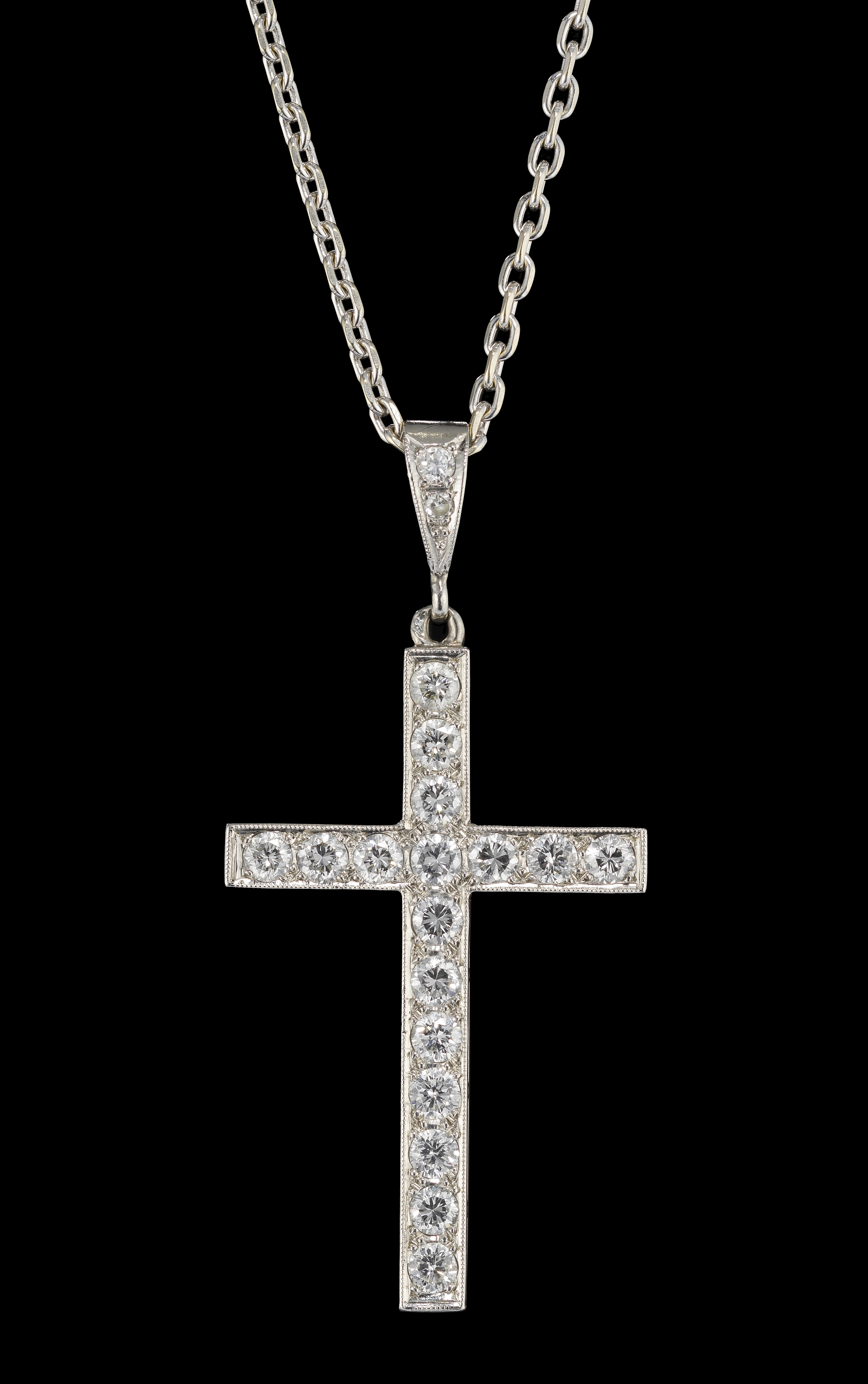 Or gris 70, H 1 cm, 4 g, accompagnés d'un certificat IGS daté d'...