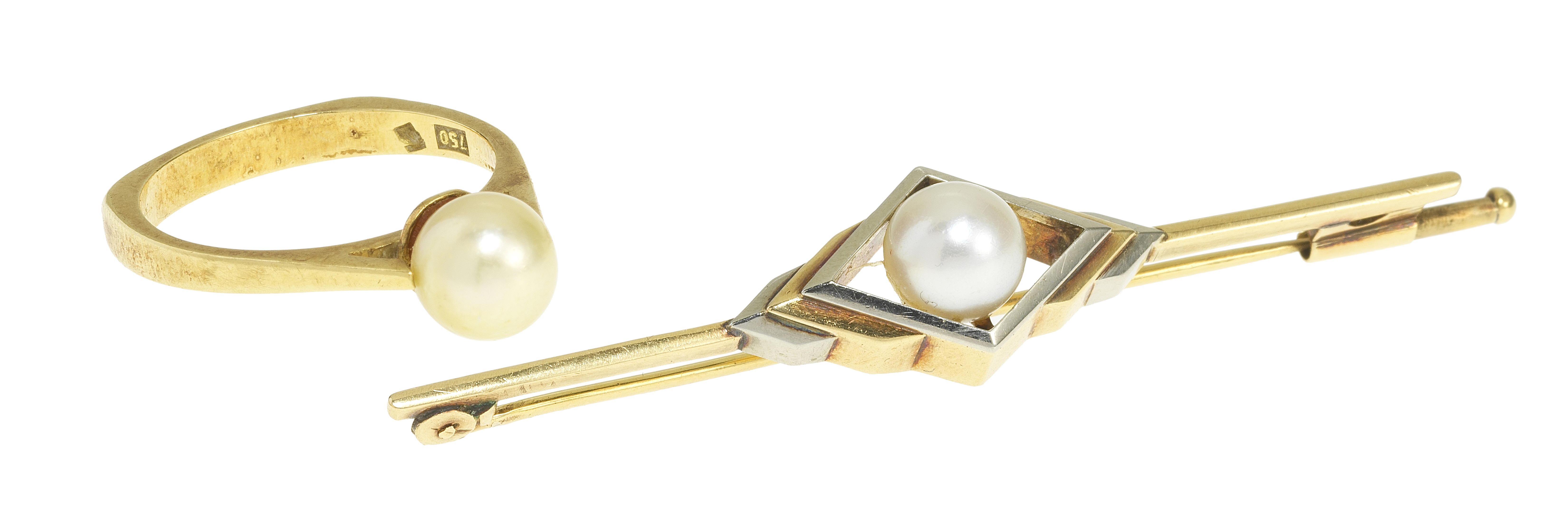4410. Lot d'une broche-barrette et d'une bague serties chacune d'une p...
