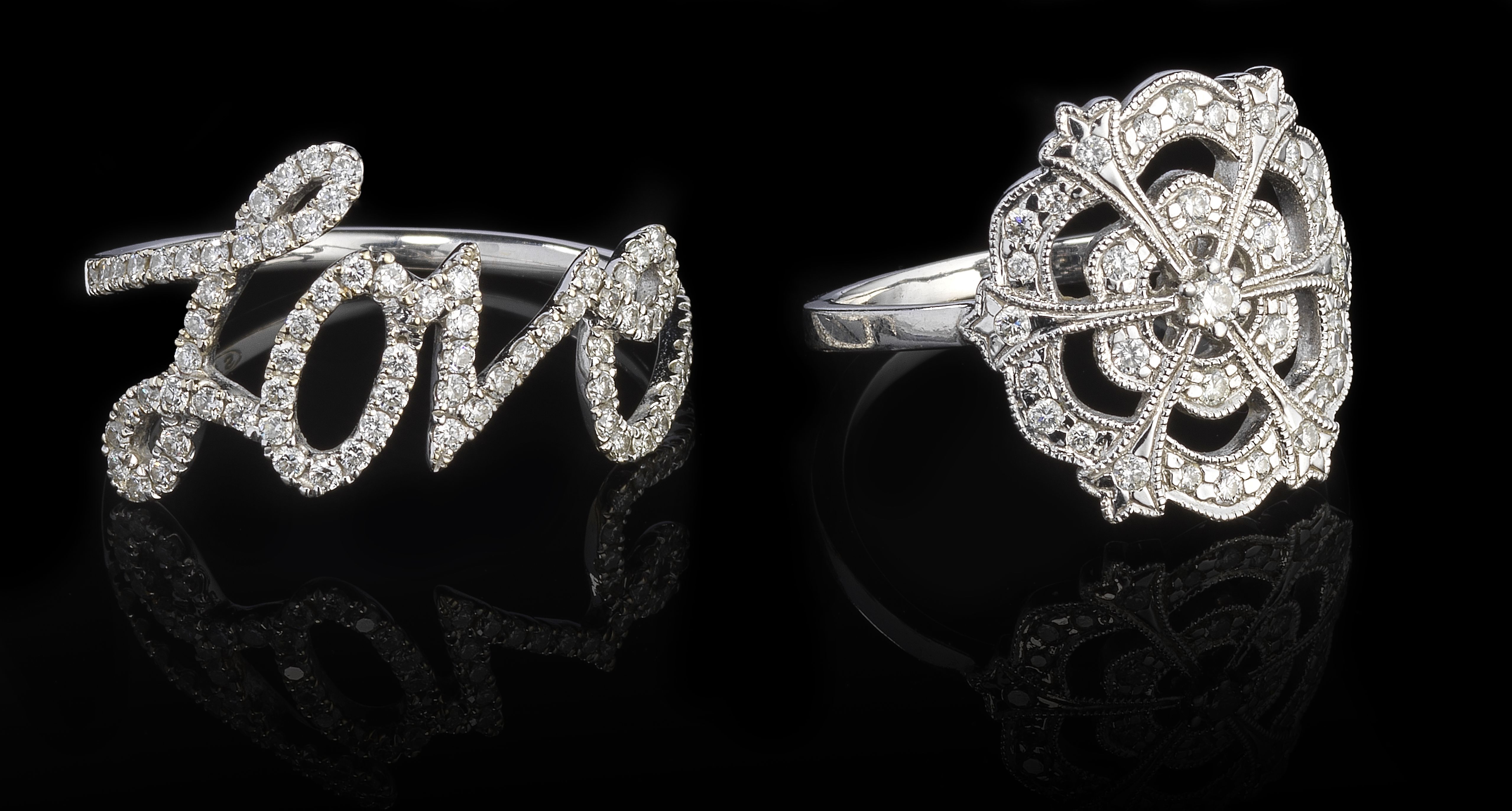 L'une ajourée, la seconde "Love", or gris 750, doigt 50-10 et 54...