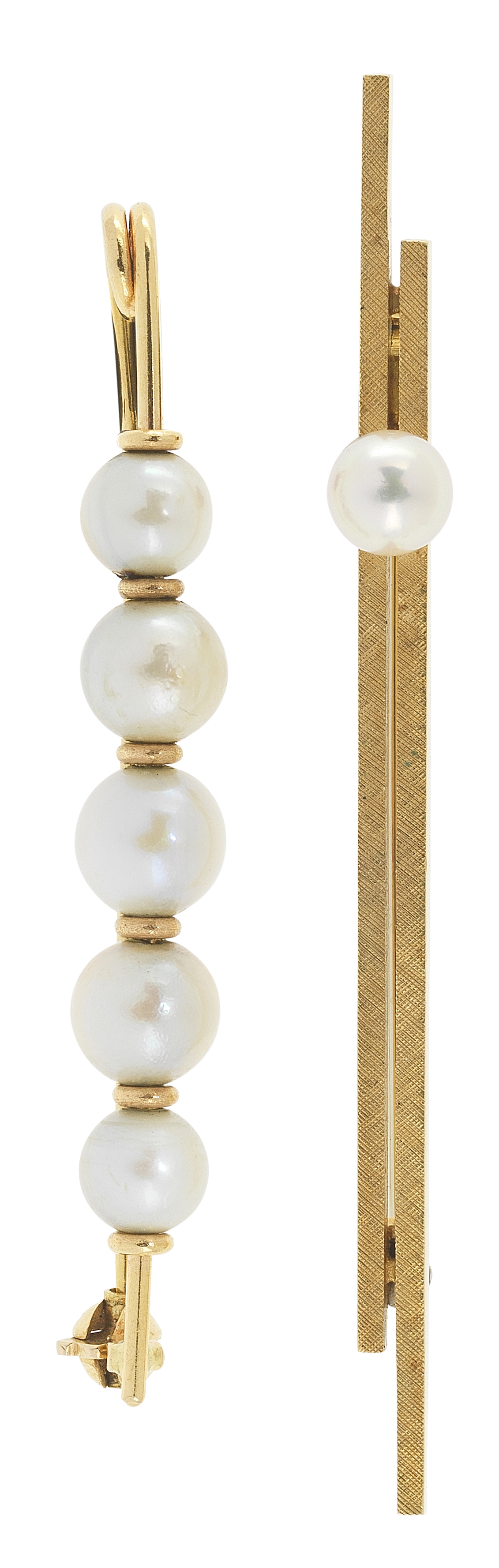 Or et or gris 750, L 5 et 6 cm, poids brut 10 g