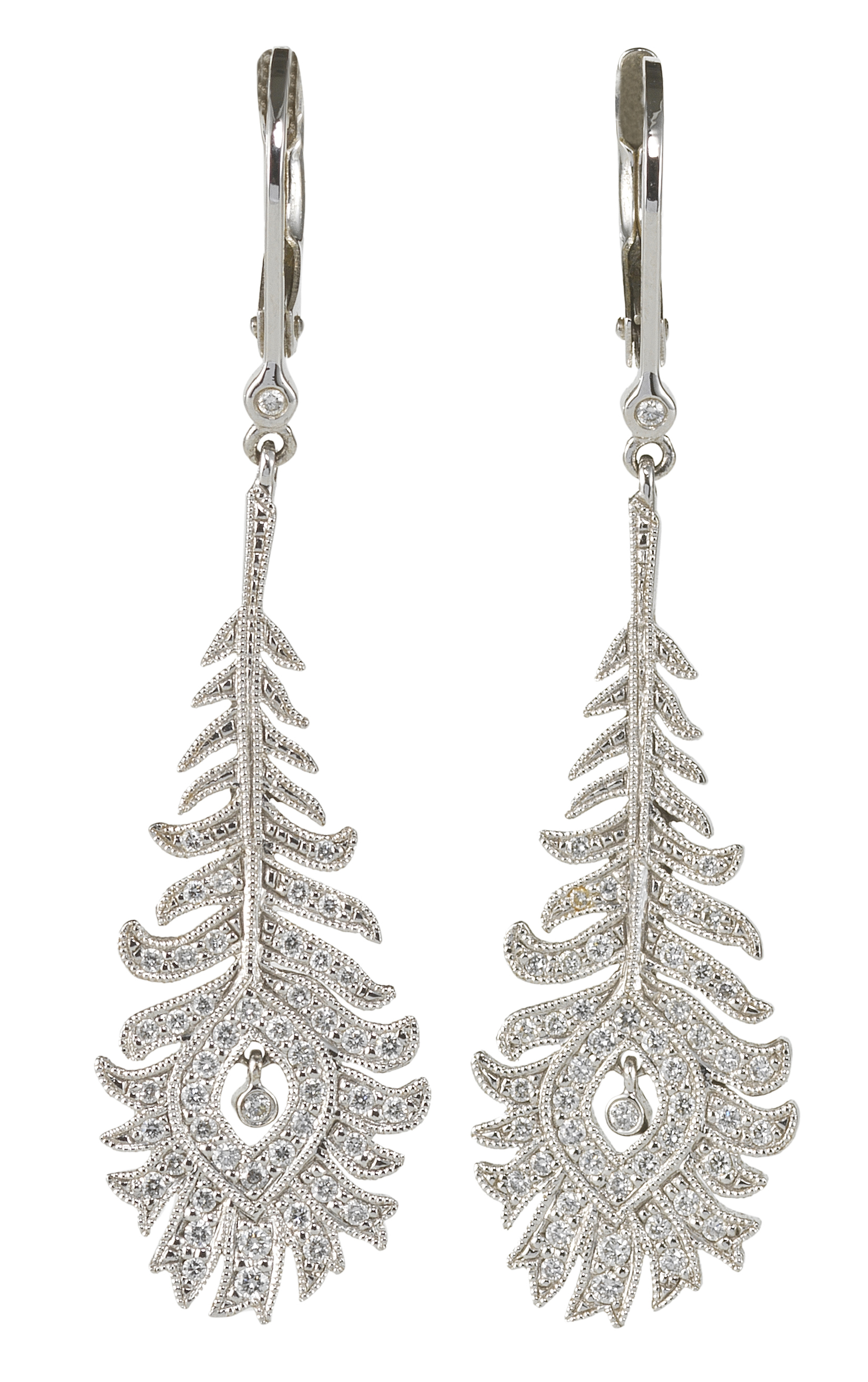 4414. Pendants d'oreilles à motif de plumes pavées de diamants