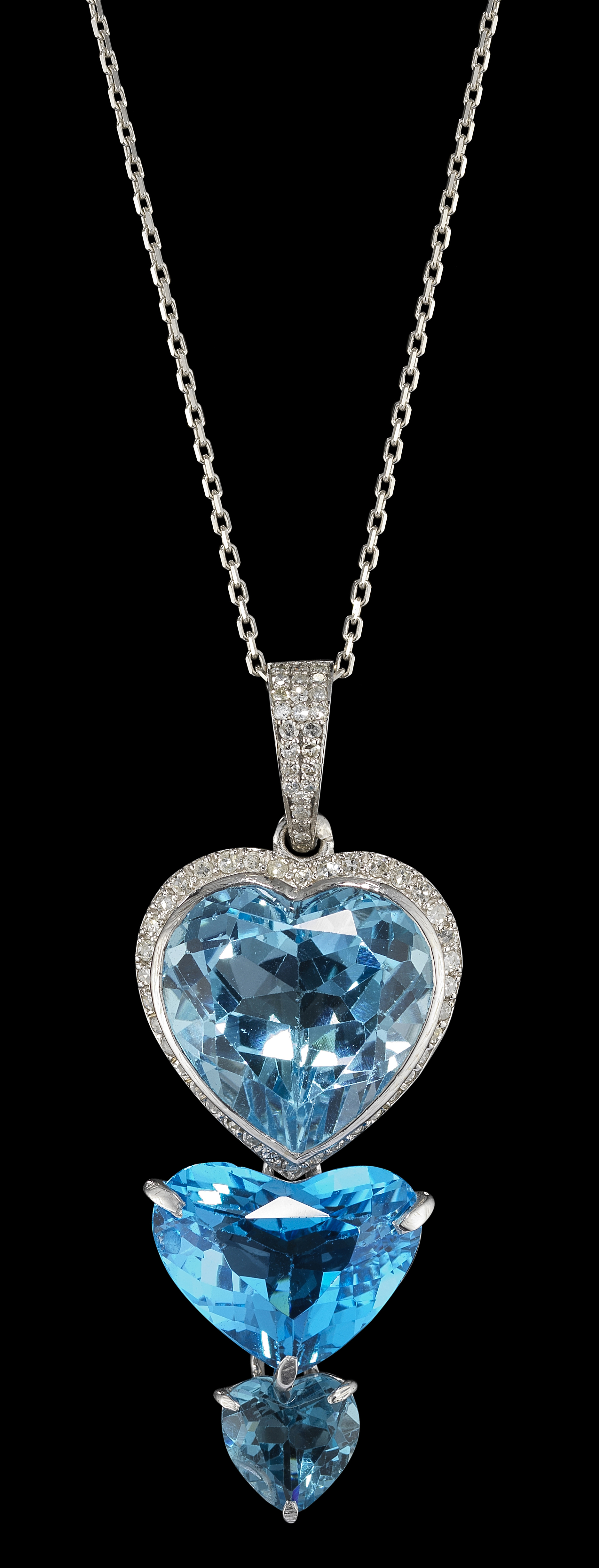 4426. *Pendentif serti de trois topazes bleues taille cœur