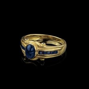 713. Bague sertie d'un saphir cabochon épaulé de saphirs