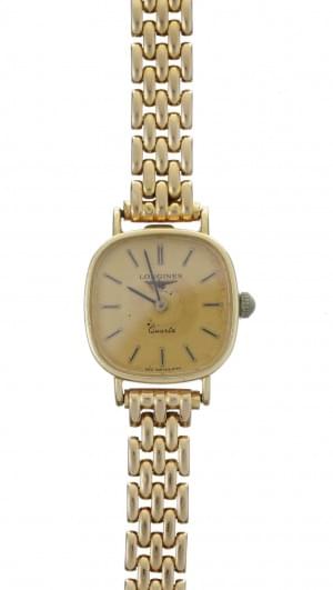 Cadran doré, aiguilles et index bâton noirs, or 750, remontoir e...