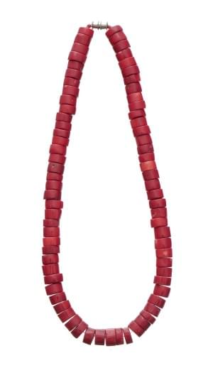 3125. Collier de perles de corail retenant un pendentif coquillage ouv...