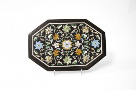 A décor de Putti et fleurs, nacre incrustée et dentelle, L 24 cm