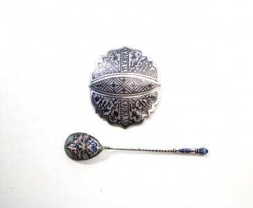 3483. Boucle de ceinture niellée "Caucase" et cuillère à motif de grap...