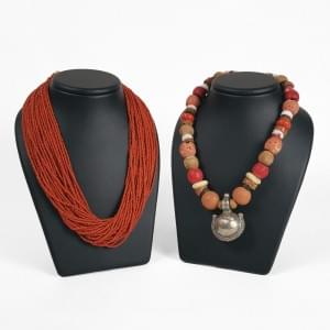 3028. Lot de deux colliers, l'un multi-rangs de corail rouge et l'autr...